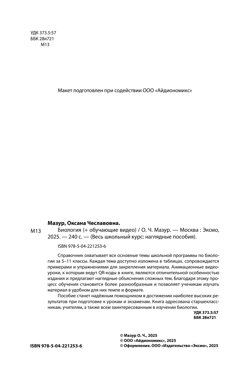 В пособии развёрнутый поясняющий материал по темам, особо актуальным для сдачи экзаменов, ОГЭ и ЕГЭ 2026, представлен в формате коротких видеороликов. Такой справочник для учеников 5, 6, 7, 8, 9, 10, 11 классов сделает процесс обучения живым и запоминающимся! Попробуй новый подход к обучению: смотри и учись в любое время и в любом месте! Также книга будет полезна для занятий родителей с детьми.