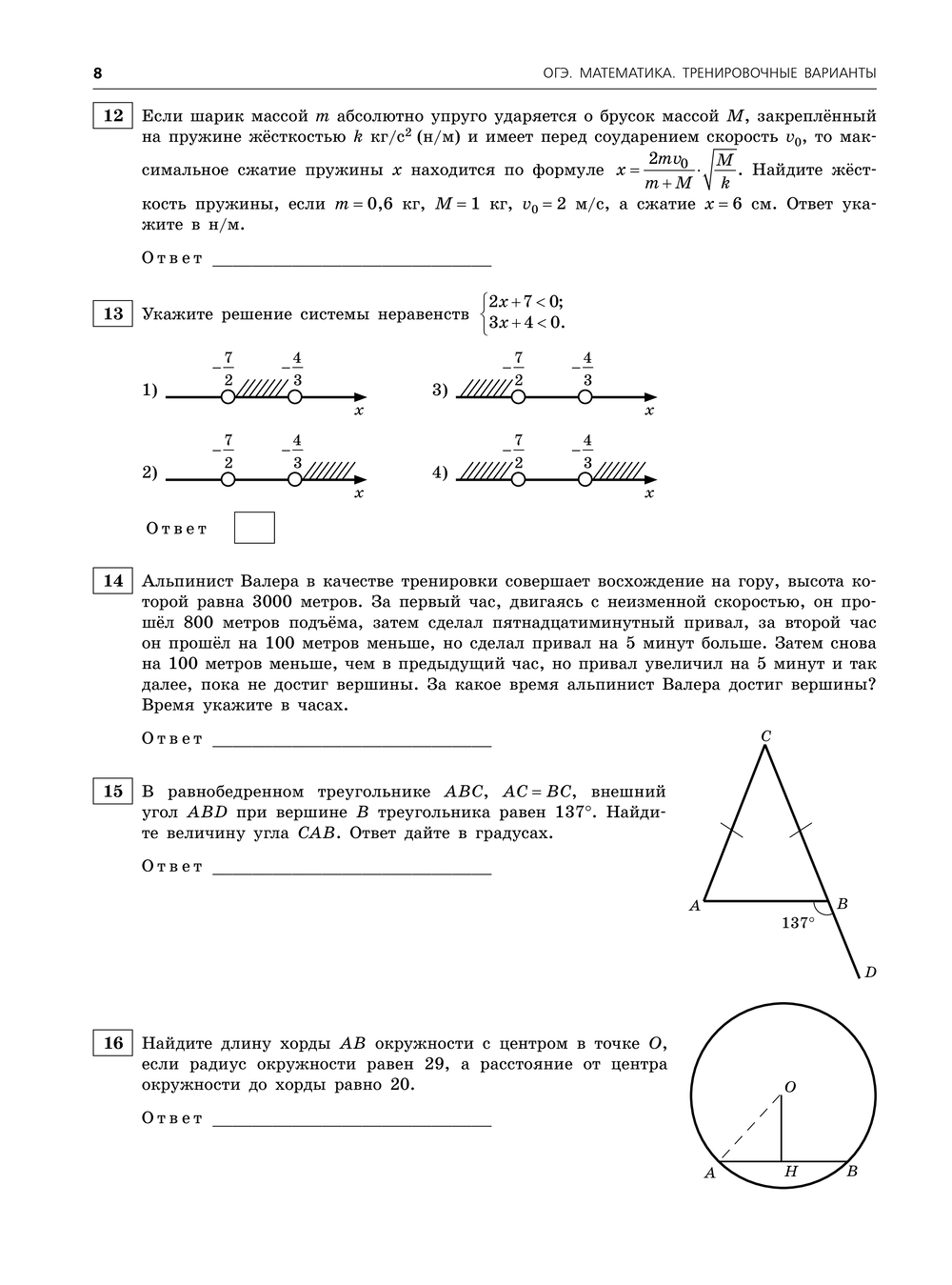 Книга предназначена для подготовки учащихся к ОГЭ по математике. Публикуемые в пособии материалы дадут представление о типах заданий и содержании экзаменационной работы.