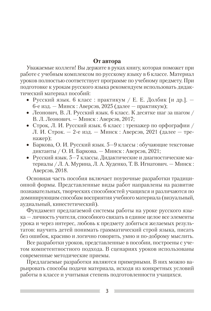 Пособие содержит методические разработки уроков русского языка для 6 класса, которые соответствуют учебной программе. Представленный материал поможет педагогам в организации и проведении занятий.