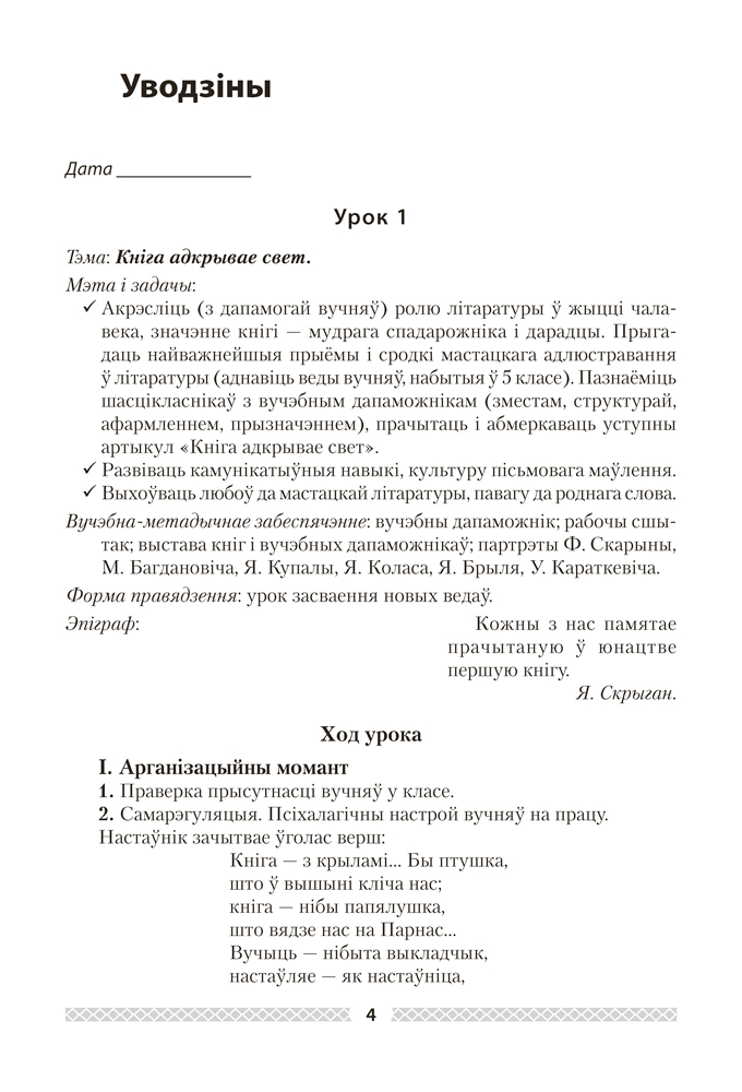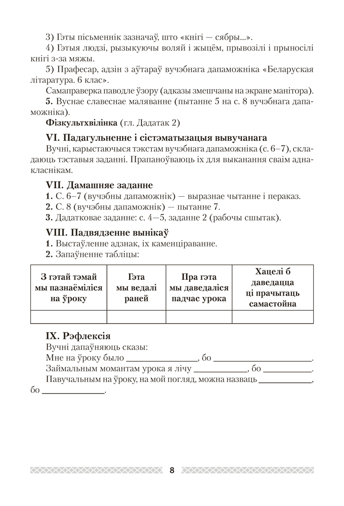 Дапаможнік змяшчае метадычныя распрацоўкі ўрокаў беларускай літаратуры для 6 класа. Прапанаваны матэрыял адпавядае вучэбнай праграме і дапаможа педагогам у арганізацыі і правядзенні заняткаў.