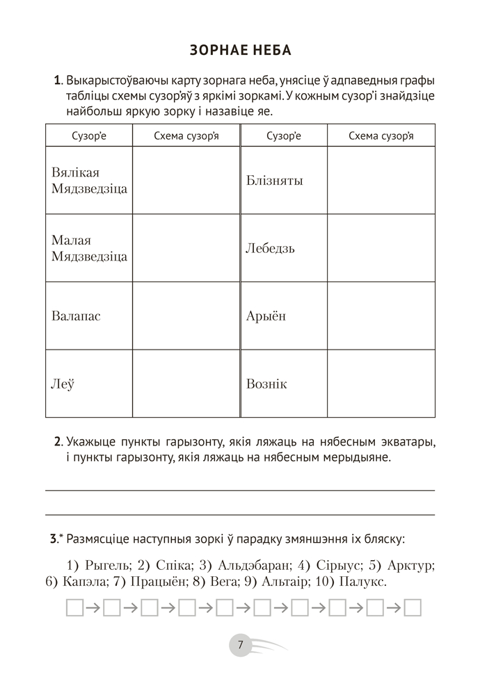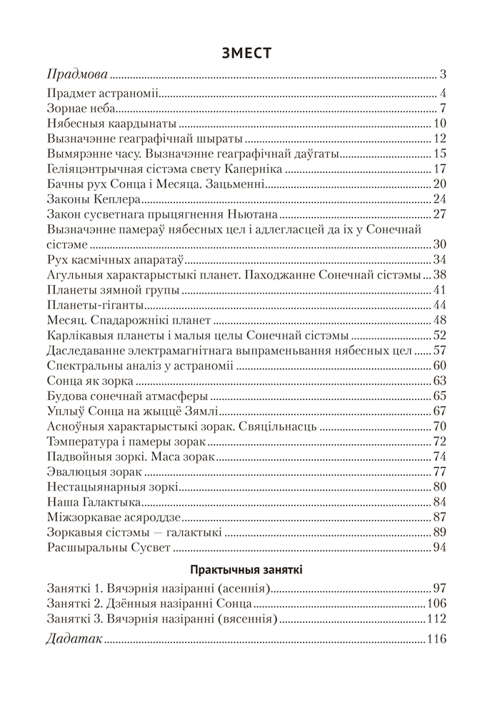 Выданне складзена ў адпаведнасці з вучэбнай праграмай і падручнікам па астраноміі. У ім прадстаўлены заданні для засваення і замацавання ведаў вучняў, матэрыялы для практычных заняткаў (назіранняў), а таксама рухомая карта зорнага неба.