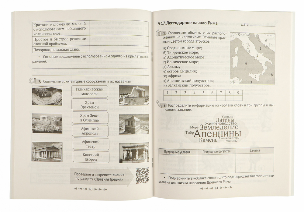 Тетрадь составлена в соответствии с учебной программой. К каждому параграфу учебного пособия по истории Древнего мира в издании приведены разнообразные компетентностно-ориентированные задания, предусматривающие работу с картосхемами, историческими документами и художественными текстами, иллюстрациями, таблицами, кроссвордами, ребусами, филвордами, "облаками слов" и т. д. К урокам обобщения предложены интерактивные упражнения.
