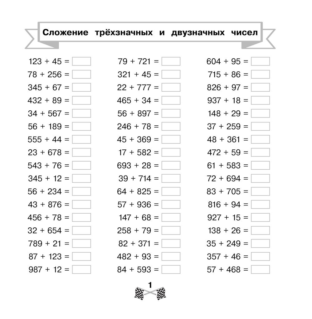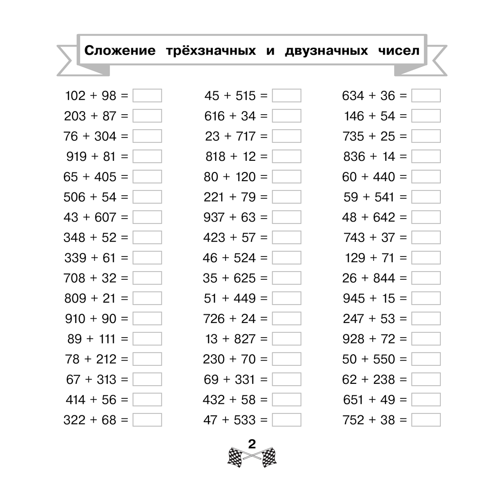 В экспресс-тренажёр включены задания на отработку навыка вычислений в уме в пределах 1000. Благодаря регулярным занятиям не более 15 минут в день ученик научится моментально складывать и вычитать большие числа без помощи калькулятора.