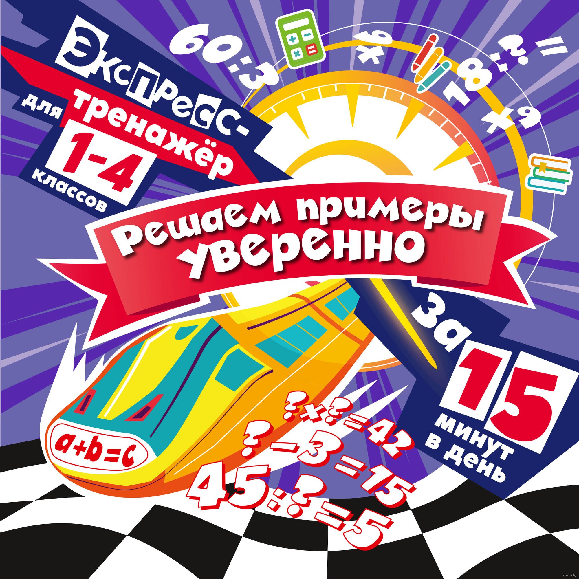 Экспресс-тренажёр по математике разработан с целью довести до автоматизма навык решения примеров. Тренажёр охватывает весь курс начальной школы, и поэтому сложность заданий постепенно возрастает. Работа с тренажёром займёт не более 15 минут в день, но ученик надёжно закрепит полученные в школе знания и научится решать примеры быстро и без ошибок.