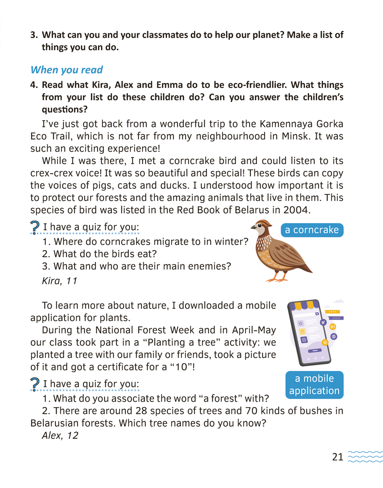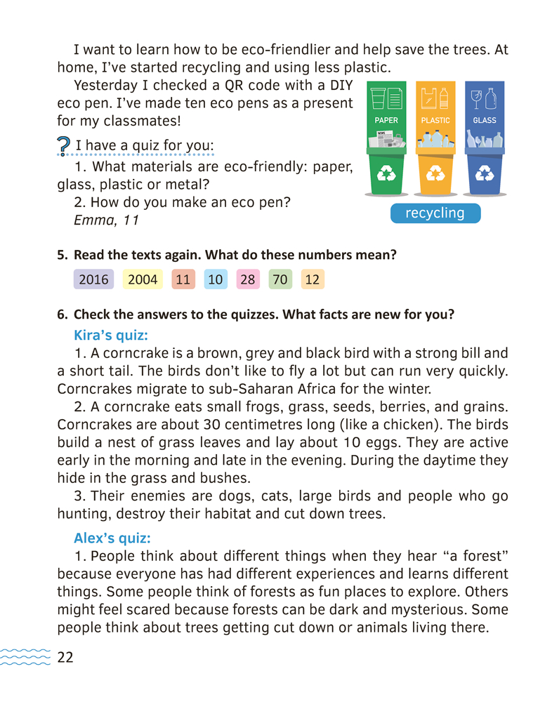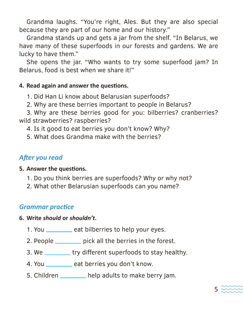 В книге для чтения представлены увлекательные тексты о нашей стране на английском языке. Каждая история построена на коммуникативном принципе: сначала проводится подготовка к теме и формату текста, затем следуют задания на общее и детальное понимание прочитанного, грамматические задания, далее предлагаются вопросы и мини-проекты. Пособие полностью соответствует учебной программе и подойдет для использования на основных и дополнительных занятиях.