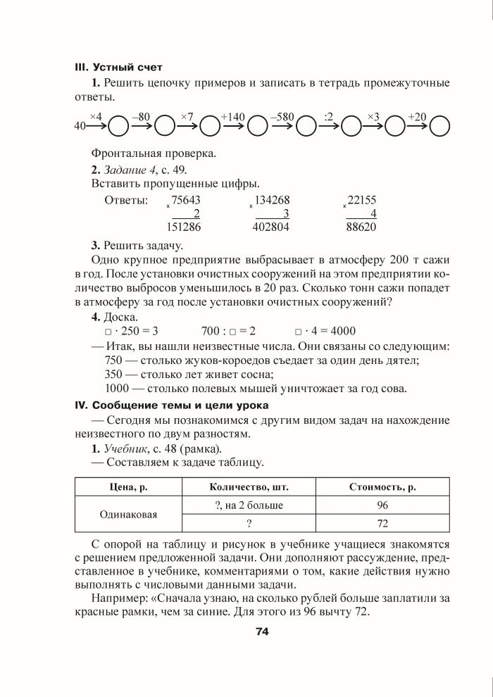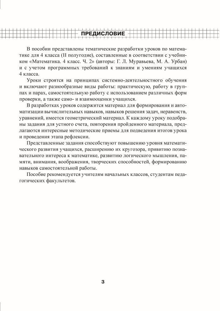Уроки разработаны в соответствии с учебным пособием "Математика. 4 класс. Часть 2" (авторы: Г. Л. Муравьева, М. А. Урбан) и календарно-тематическим планированием, отличаются четкой структурой, содержанием разнообразных форм работы с учащимися, методическими комментариями к отдельным видам заданий.