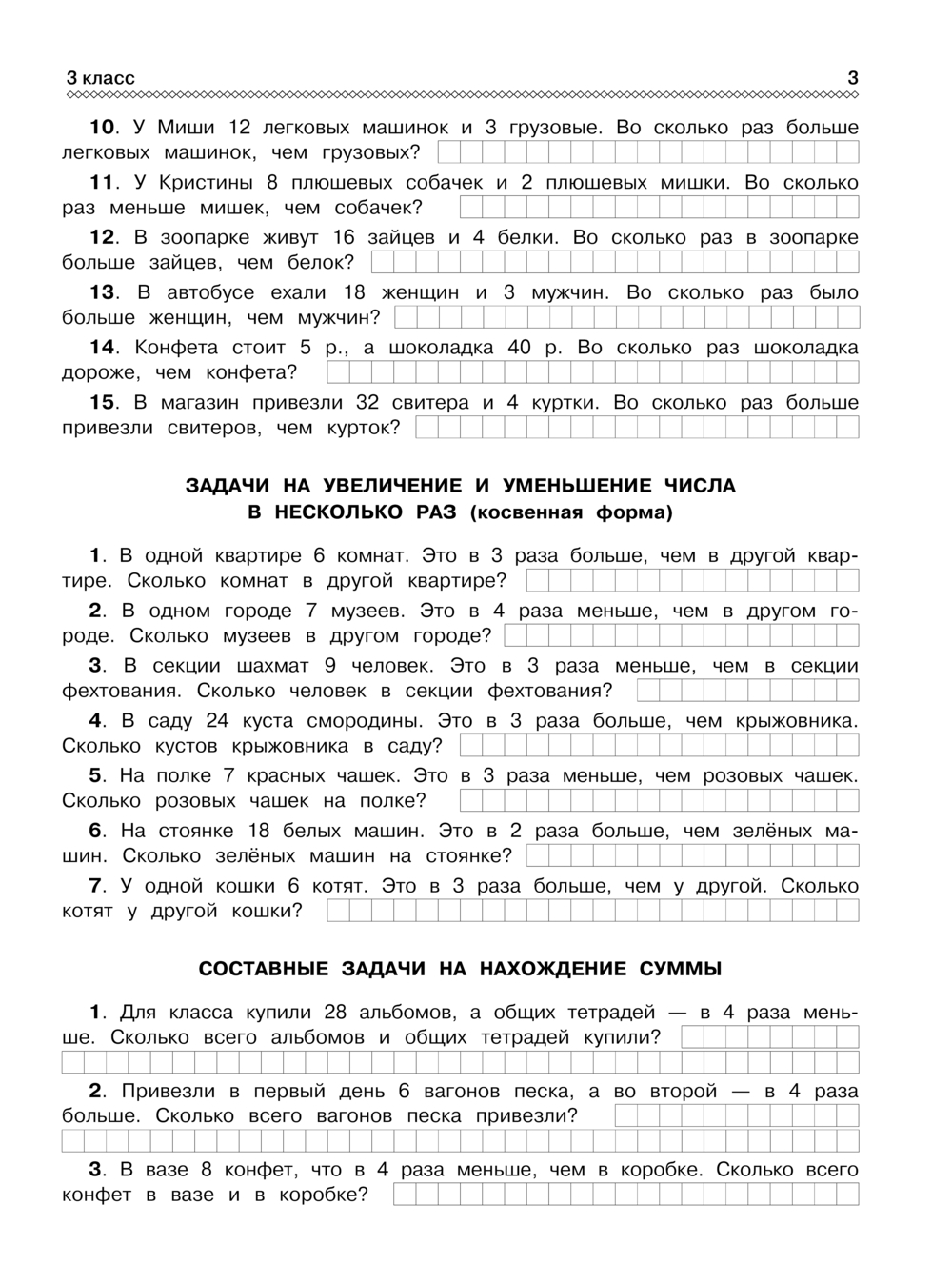 Издание содержит материал, направленный на формирование математических знаний, умений и навыков. Для удобства использования решение задач ребёнок записывает прямо в книге. Это поможет сэкономить время учителю или родителям при проверке заданий.