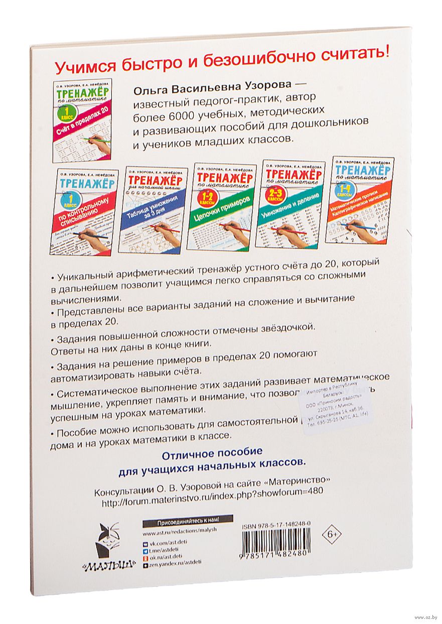 Книга поможет ребёнку запомнить состав числа и автоматизировать навык счёта в пределах 20, что значительно облегчит дальнейшее обучение математике в начальной школе.