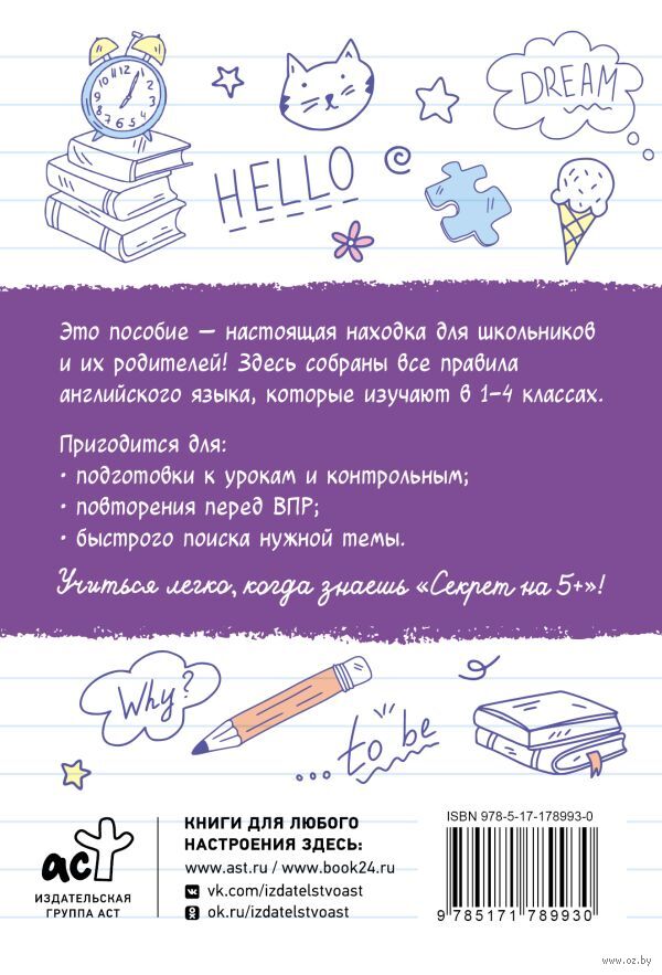 В этом пособии собраны все основные правила английского языка, которые проходят в 1-4 классах, от орфографии до пунктуации.