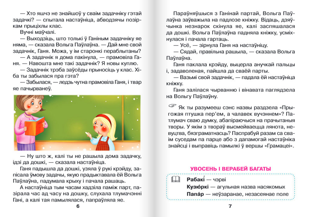 У дапамогу вучням даюцца тлумачэннi слоў, прадметныя малюнкi.