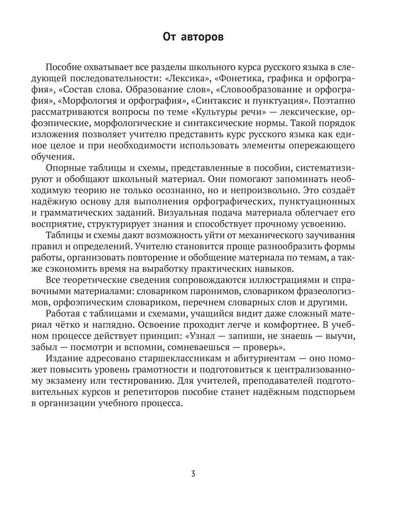 Предлагаемое пособие поможет старшеклассникам и абитуриентам повысить свой уровень грамотности и улучшить знания по предмету, а учителям, преподавателям подготовительных курсов и репетиторам – подготовить ребят к централизованному экзамену или тестированию.