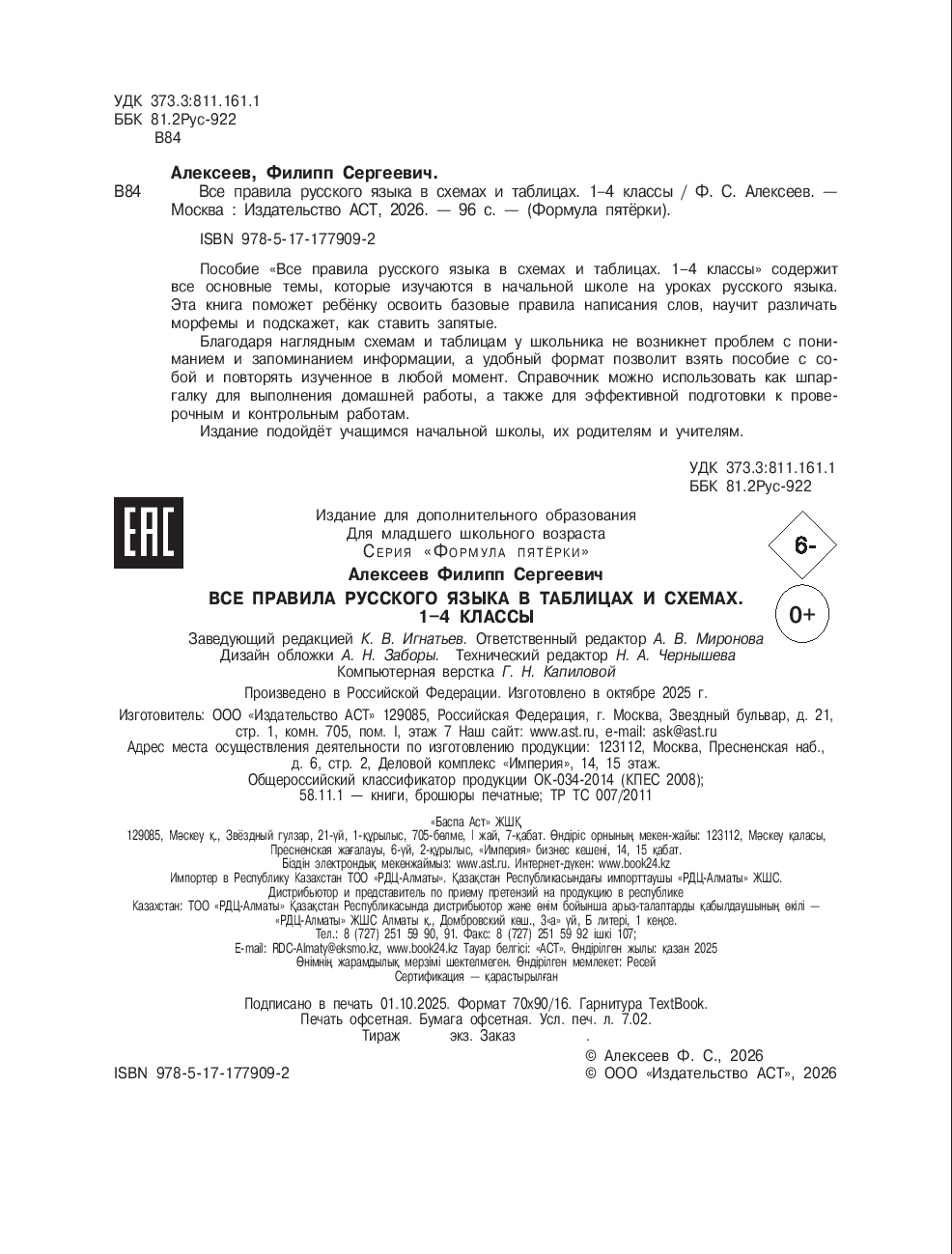 | Изготовитель | Творческое кооперативное объединение «АСТ». 129085, РФ, г. Москва, б-р Звездный, 21, стр. 1 |