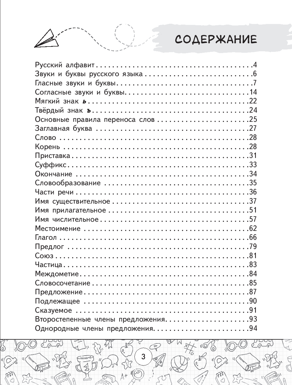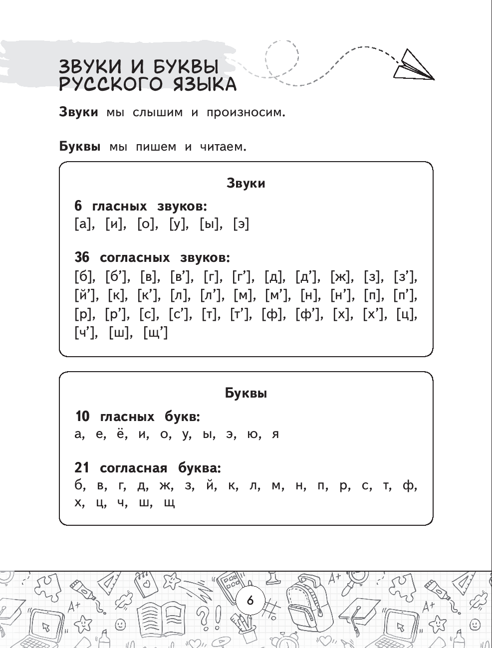 Пособие "Все правила русского языка в схемах и таблицах. 1-4 классы" содержит все основные темы, которые изучаются в начальной школе на уроках русского языка. Эта книга поможет ребёнку освоить базовые правила написания слов, научит различать морфемы и подскажет, как ставить запятые.