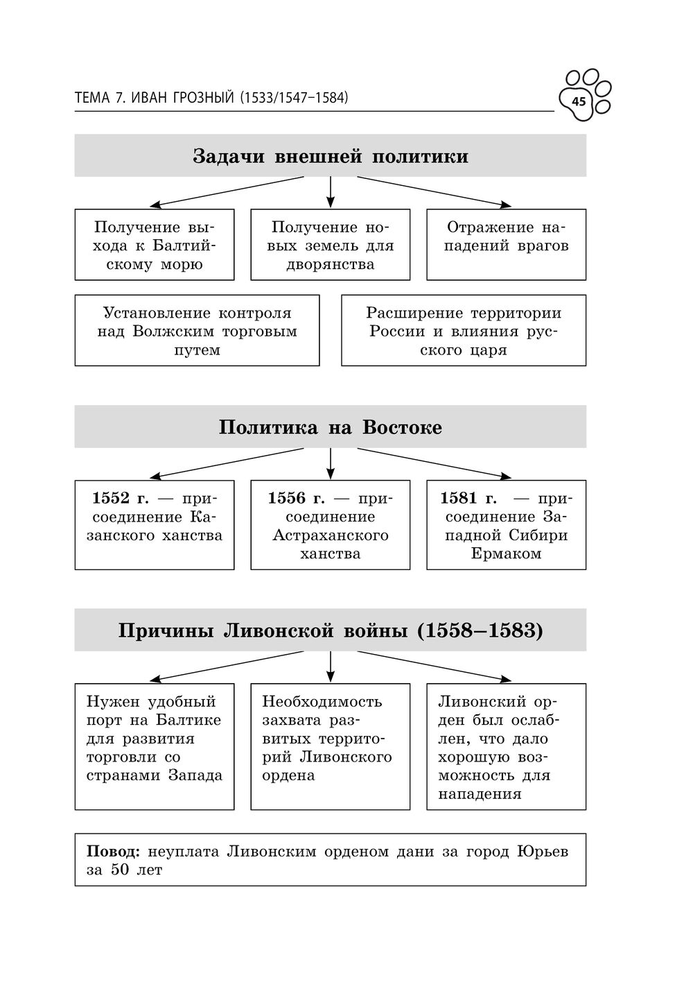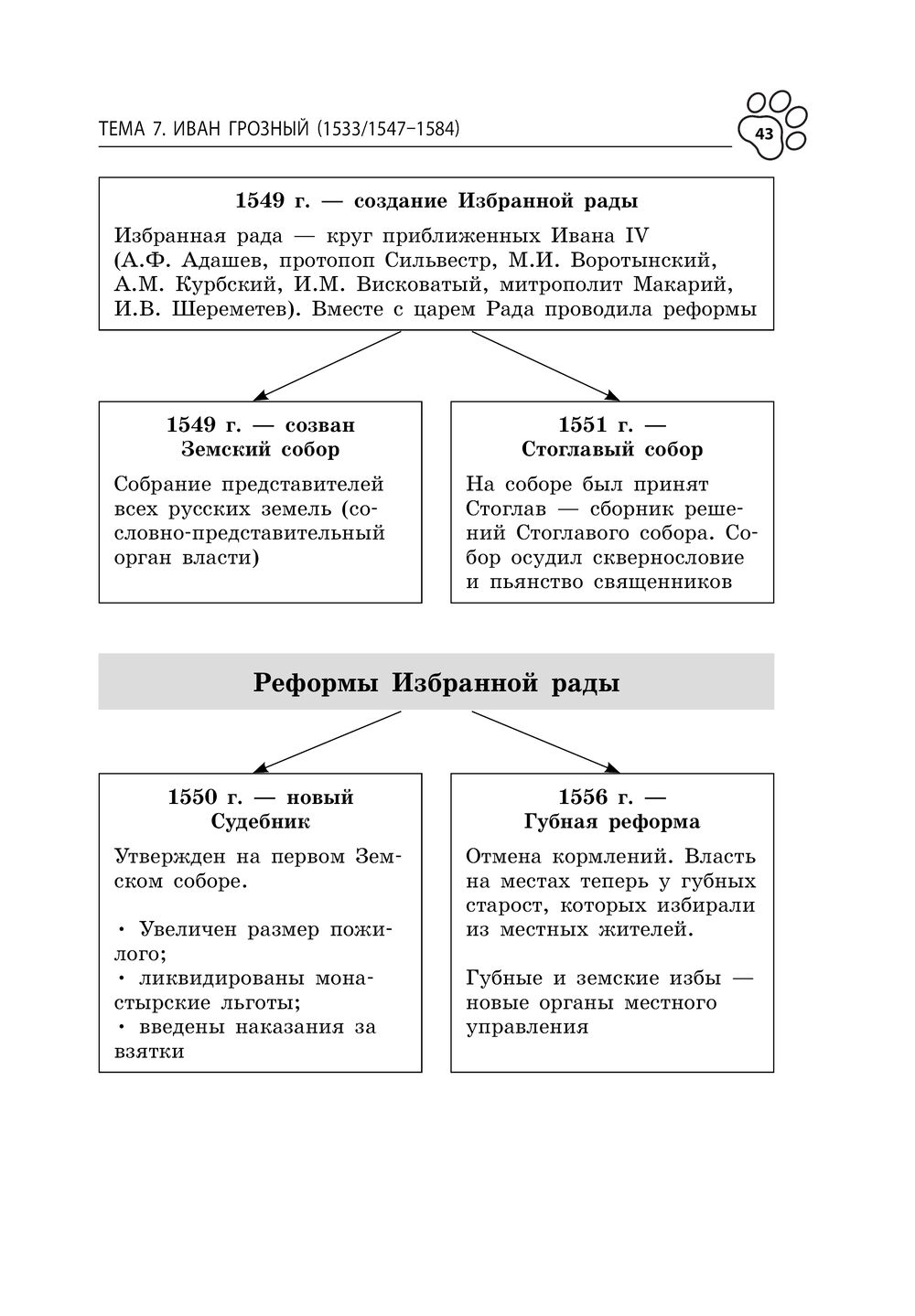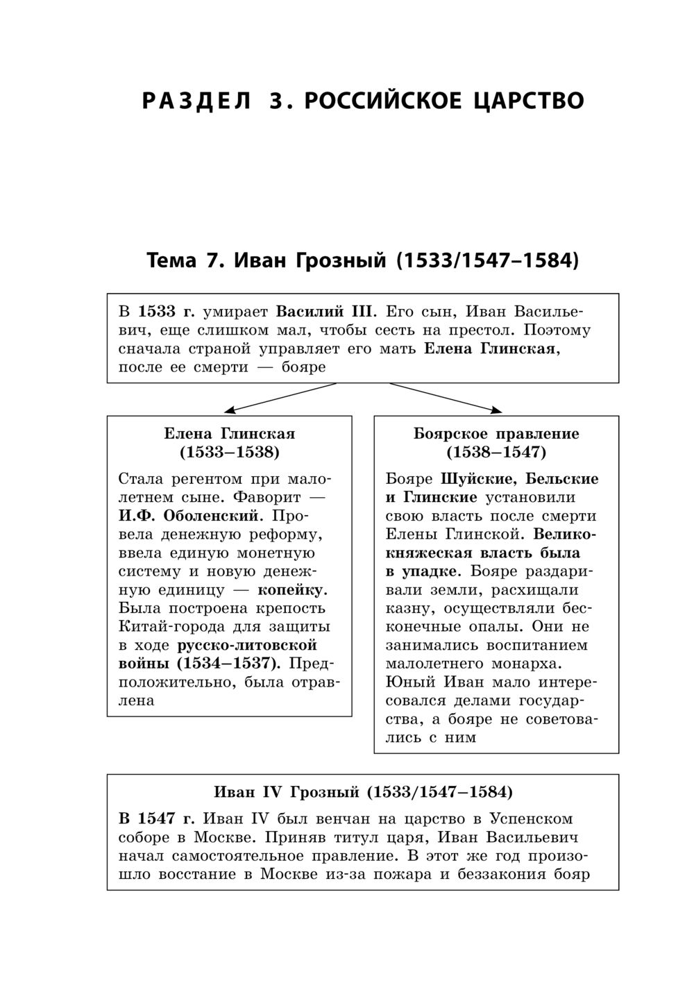 Пособие предназначено для подготовки учащихся старших классов к урокам и ЕГЭ по истории. В книгу включены необходимые справочные материалы по основным разделам школьного курса истории России, представленные в наглядных и удобных для запоминания схемах и таблицах.