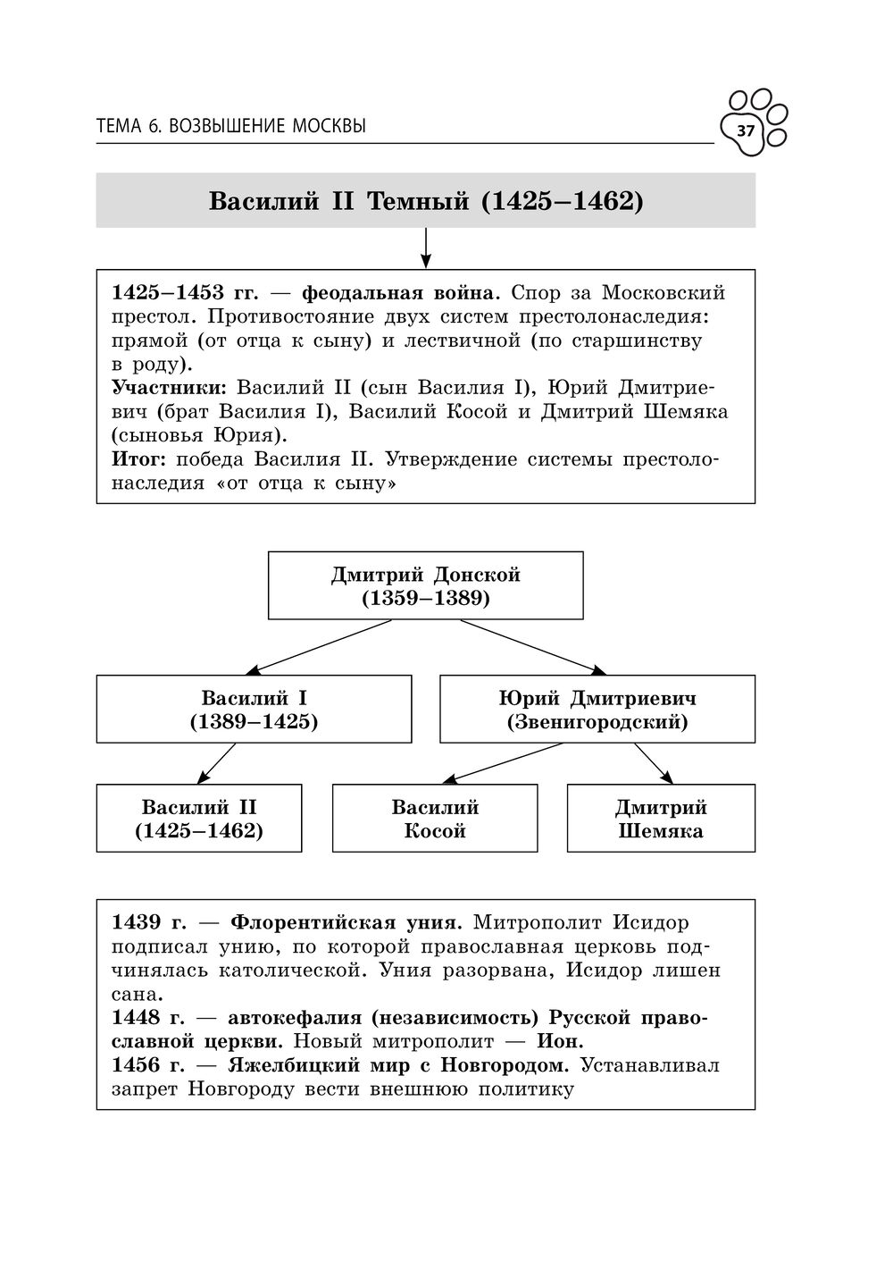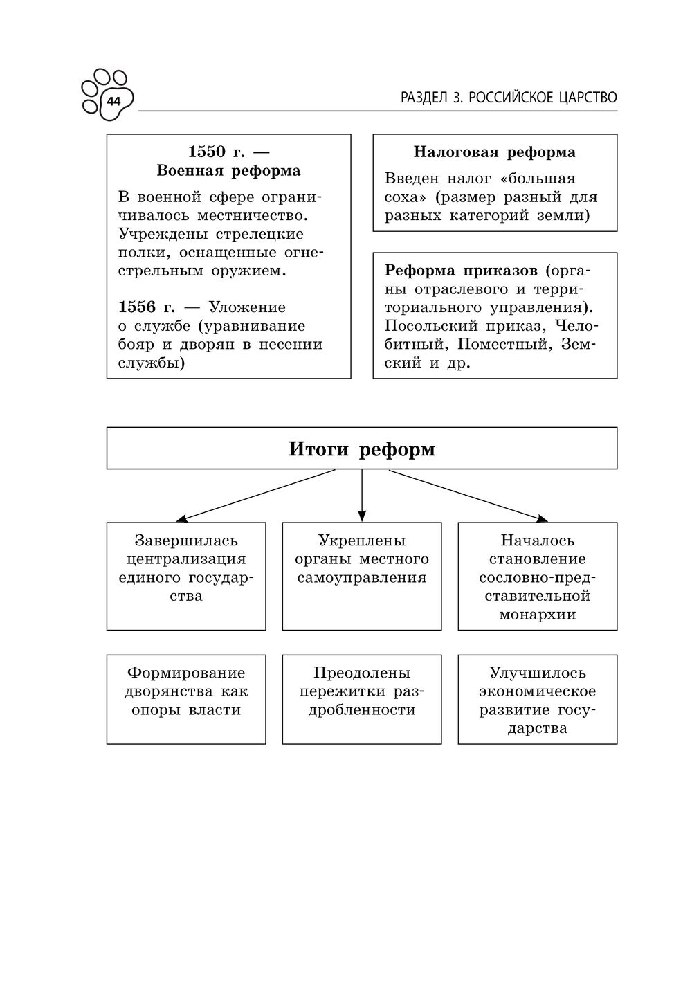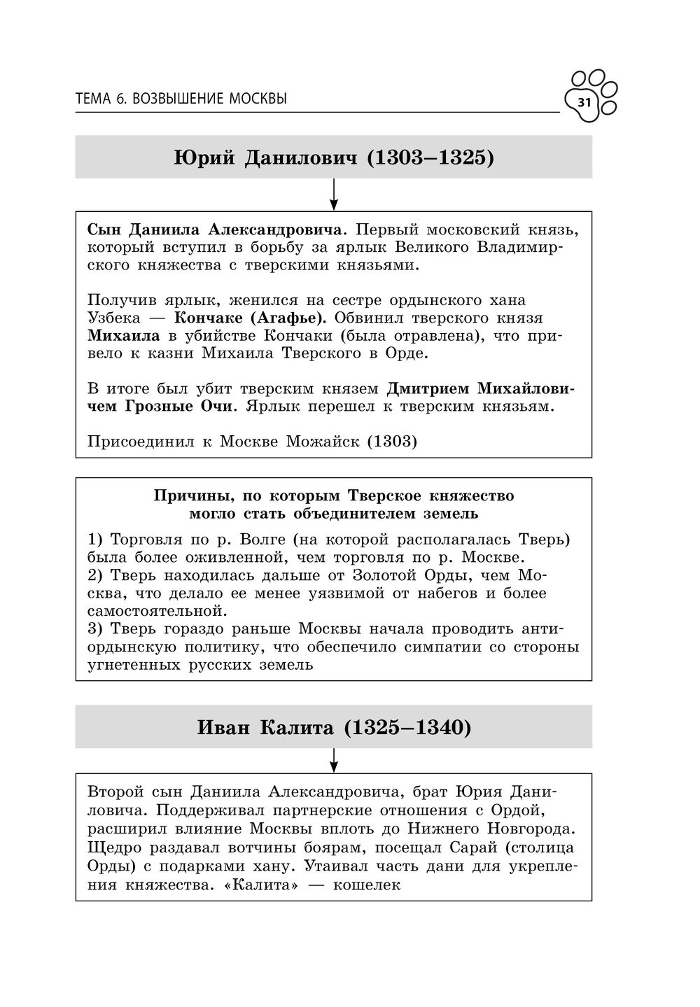 Пособие предназначено для подготовки учащихся старших классов к урокам и ЕГЭ по истории. В книгу включены необходимые справочные материалы по основным разделам школьного курса истории России, представленные в наглядных и удобных для запоминания схемах и таблицах.