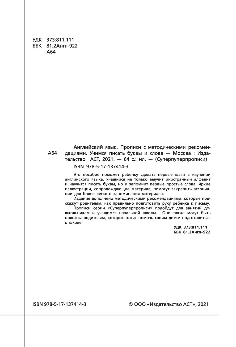 Это пособие поможет ребёнку сделать первые шаги в изучении английского языка. Учащийся не только выучит иностранный алфавит и научится писать буквы, но и запомнит первые простые слова. Яркие иллюстрации, сопровождающие материал, помогут закрепить ассоциации для более лёгкого запоминания материала.