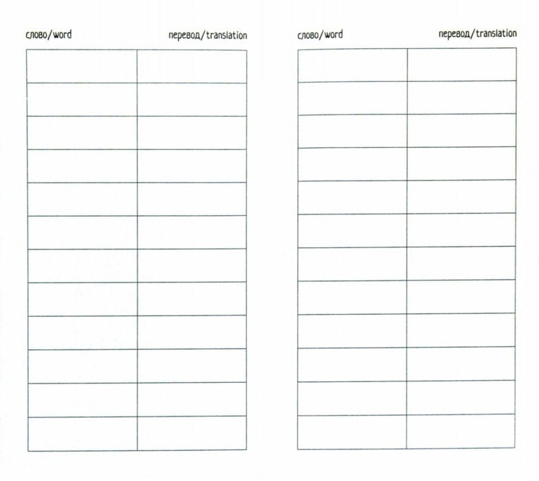 Это универсальные тетради для записи слов на любом иностранном языке с яркой, привлекательной и плотной обложкой. Удобный карманный формат и страницы с широкой линовкой. Каждая страница тетради поделена на два столбца: для записи слова и перевода, а места в ней хватит для записи более 700 слов.