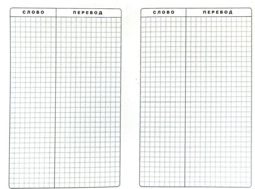 Тетрадь в клетку удобного компактного формата для записи новых слов. Симпатичный современный дизайн и прочная обложка. Каждая страница тетради поделена на две колонки для слова и перевода.