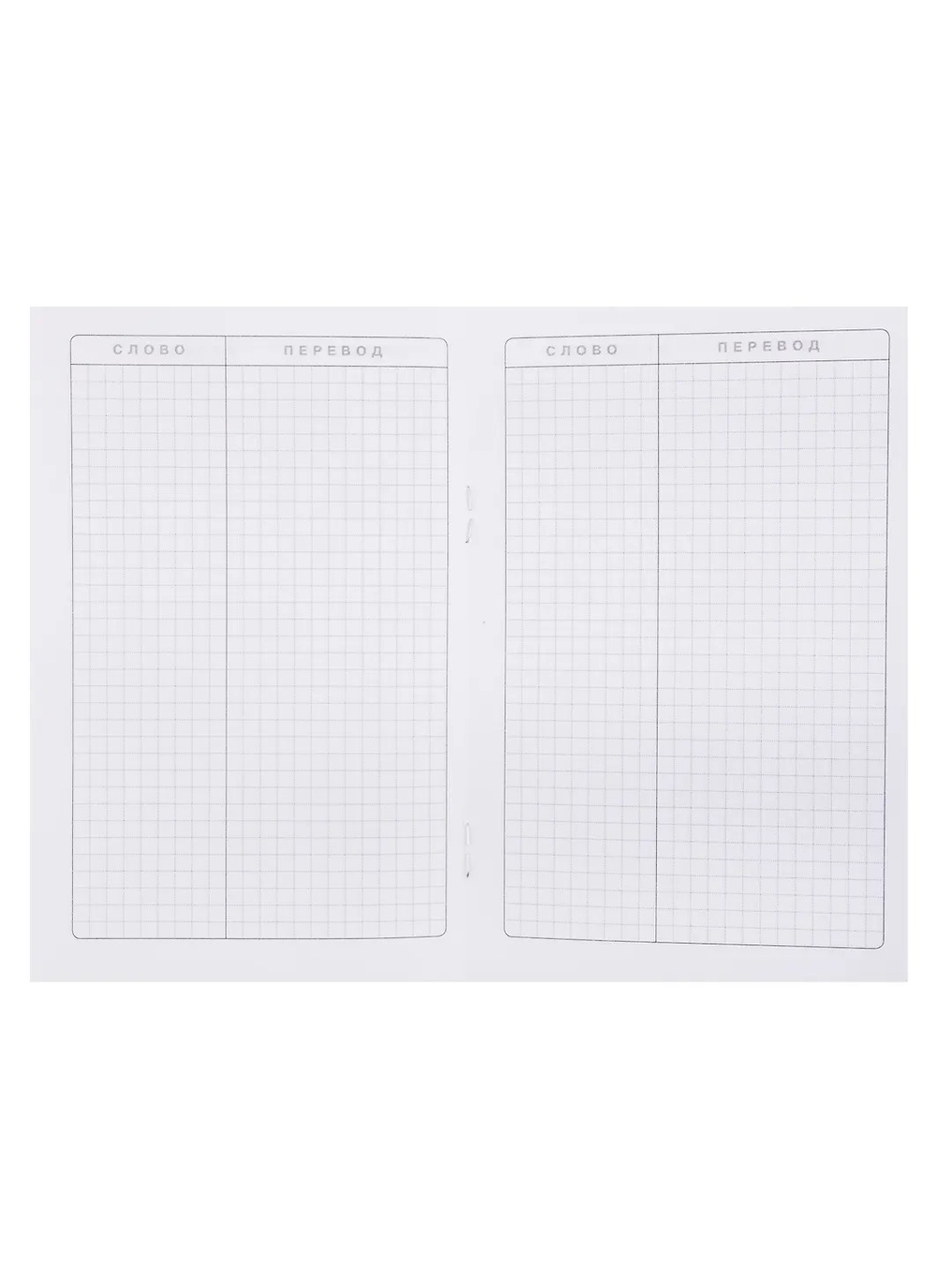 Тетрадь в клетку удобного компактного формата для записи новых слов. Симпатичный современный дизайн и прочная обложка. Каждая страница тетради поделена на две колонки для слова и перевода.