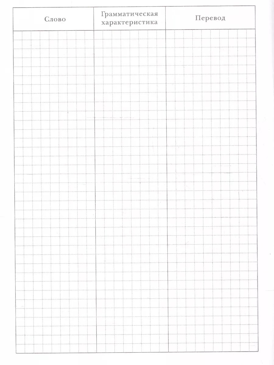 В начале тетради есть место для записи алфавита. Еще один раздел – 170 базовых слов на русском языке для самостоятельного перевода. Пять чистых листов отведены для записи грамматических правил и исключений.