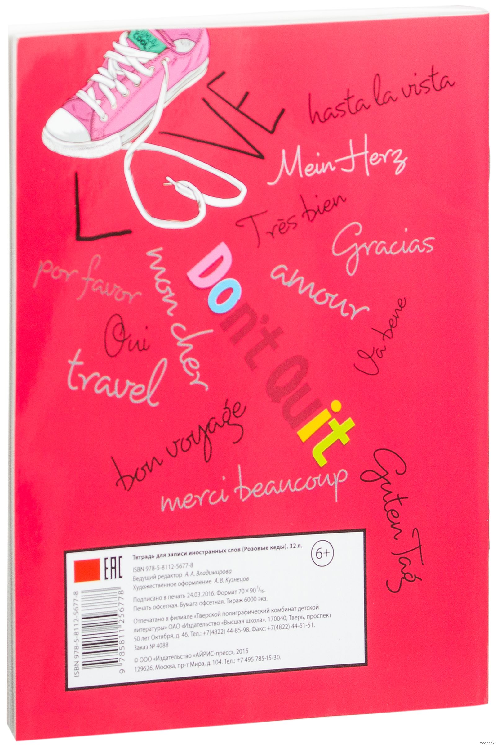 Тетрадь в привлекательной, яркой и прочной глянцевой обложке для записи слов при изучении любого иностранного языка. Страницы в клетку расчерчены на три колонки. Удобная разметка страницы в клетку позволяет записать несколько вариантов перевода и сопутствующую лексику (синонимы, антонимы и примеры употребления слова).