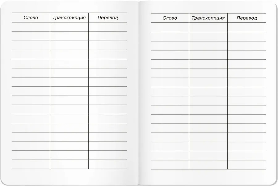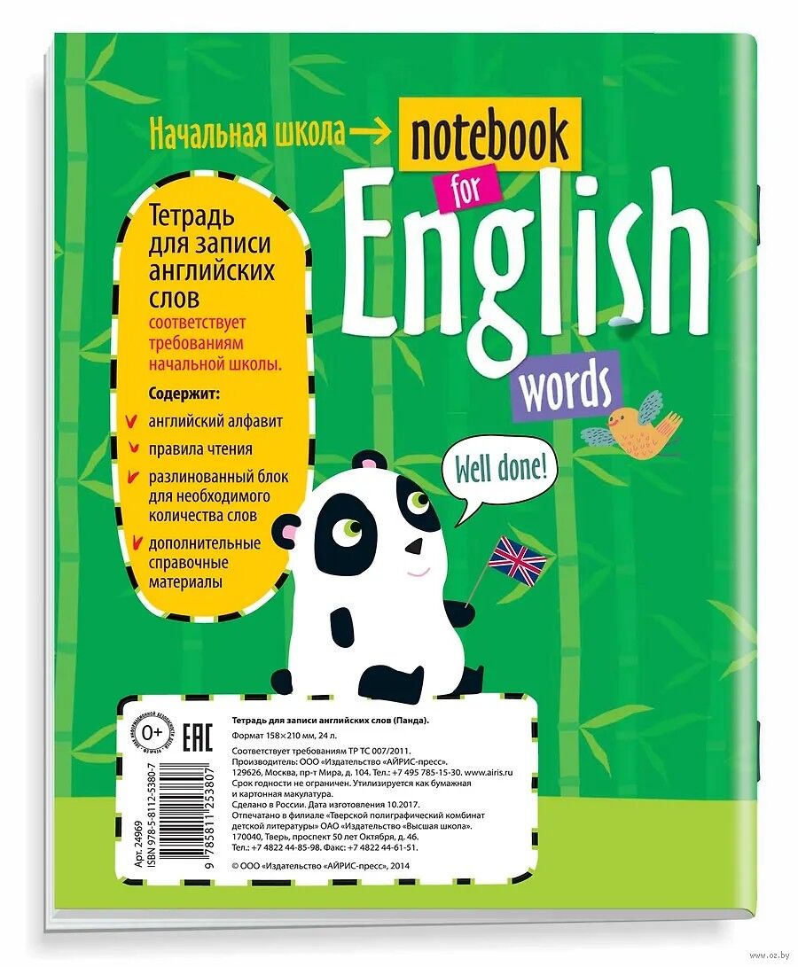 Тетрадь в линейку для записи английских слов в начальной школе. Прочная глянцевая ламинированная обложка с весёлым и ярким дизайном и местом для подписи. Страницы тетради разделены на три колонки: слово, транскрипция и перевод. На широких строчках удобно писать крупным детским почерком, в этой тетради поместится более 500 слов.