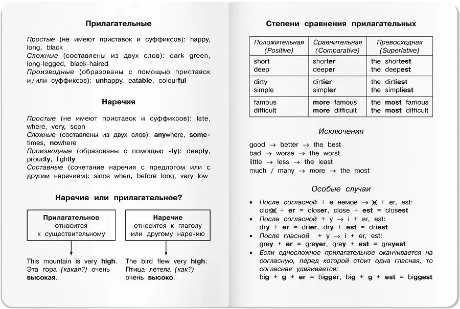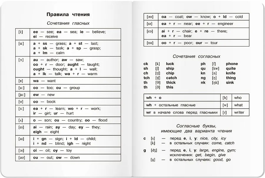 В начале и конце есть небольшое количество справочного материала, полезного ученикам начальной школы: алфавит, правила чтения, некоторые грамматические правила, а также одна страница с основными неправильными глаголами. В конце тетради также отведено место для записи правил, которые необходимо запомнить.