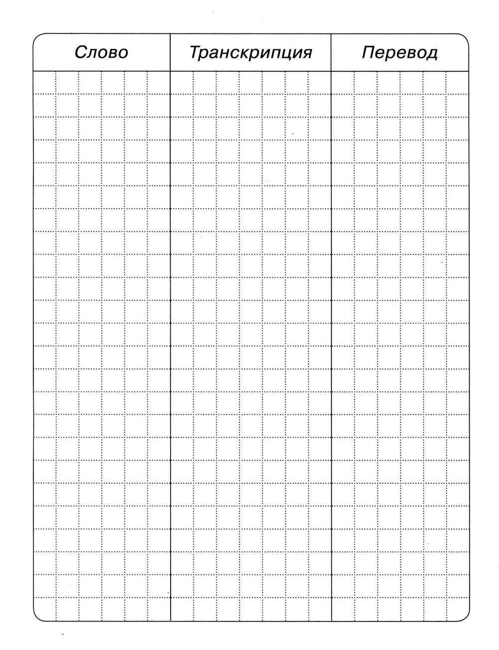 Такая тетрадь просто необходима ребёнку в начале изучения английского языка. Яркий, симпатичный дизайн поднимает настроение и дарит положительные эмоции во время занятий. Страницы в тетради поделены на три колонки: слово, транскрипция и перевод. Крупные клетки идеально подходят для записей размашистым детским почерком. В этой тетради поместится много слов, а плотная глянцевая обложка позволит пользоваться тетрадью достаточно долго.