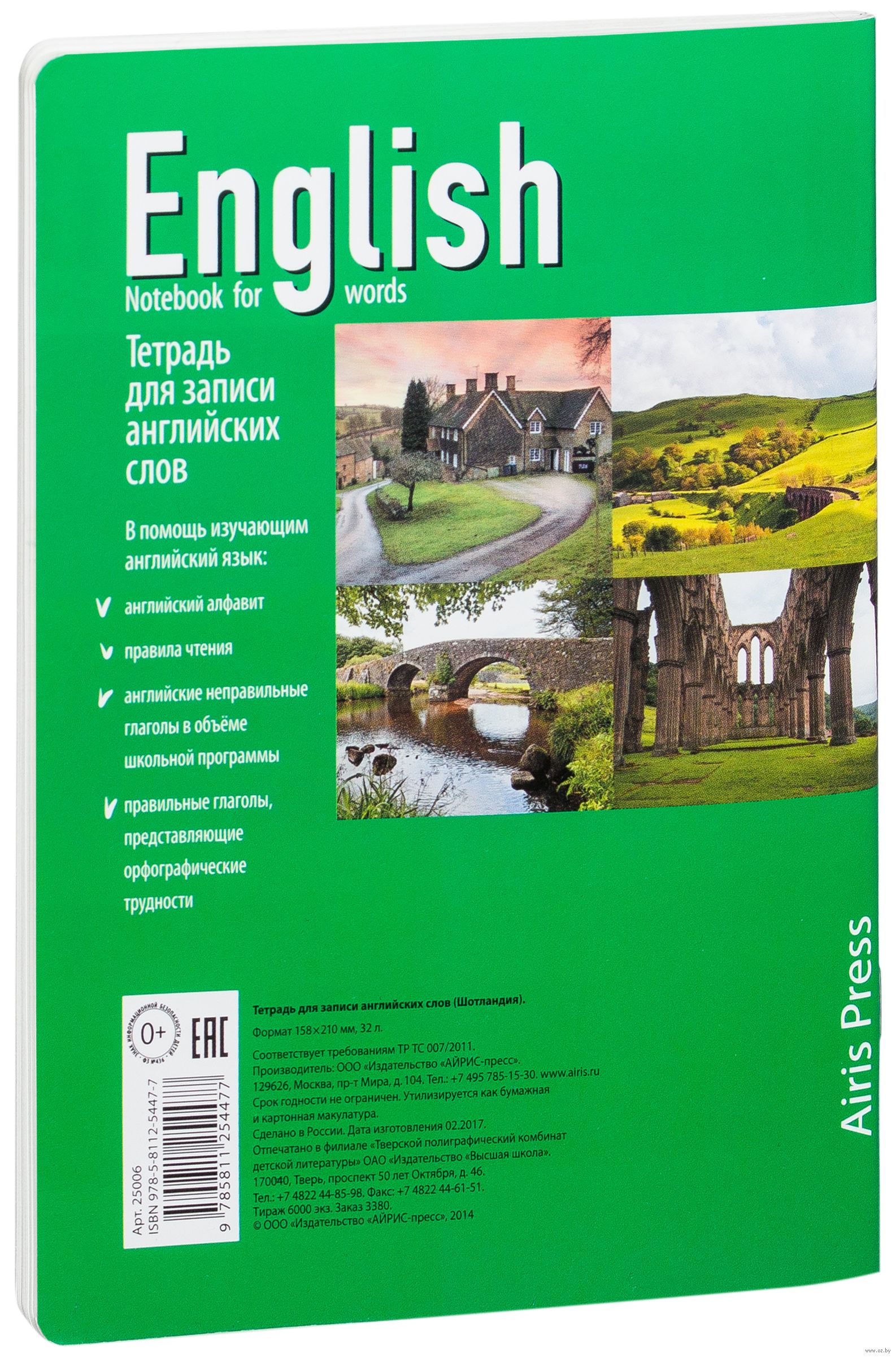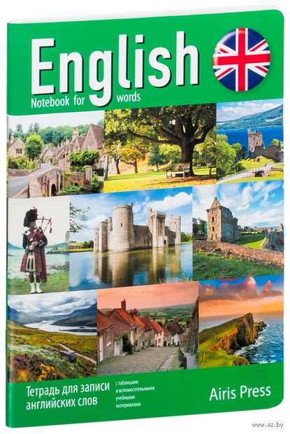 Эта тетрадь поможет выучить новые английские слова. Прочная глянцевая обложка оригинального современного дизайна с английской тематикой и блок в клетку. Листы расчерчены на три столбца: слово, транскрипция, перевод.