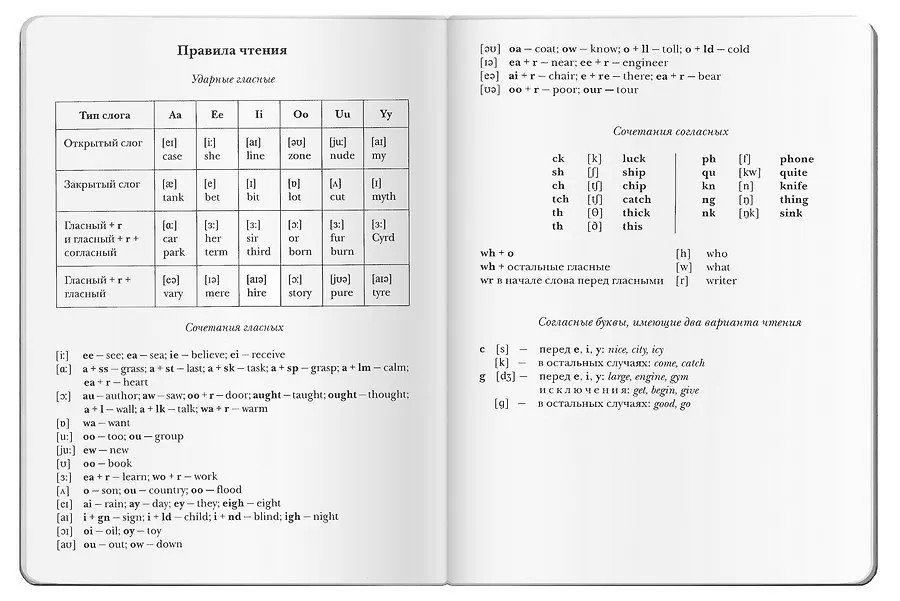 В тетради есть справочный материал, необходимый для изучения языка: английский алфавит, правила чтения, 100 основных неправильных глаголов и таблица основных глаголов, вызывающих орфографические трудности.