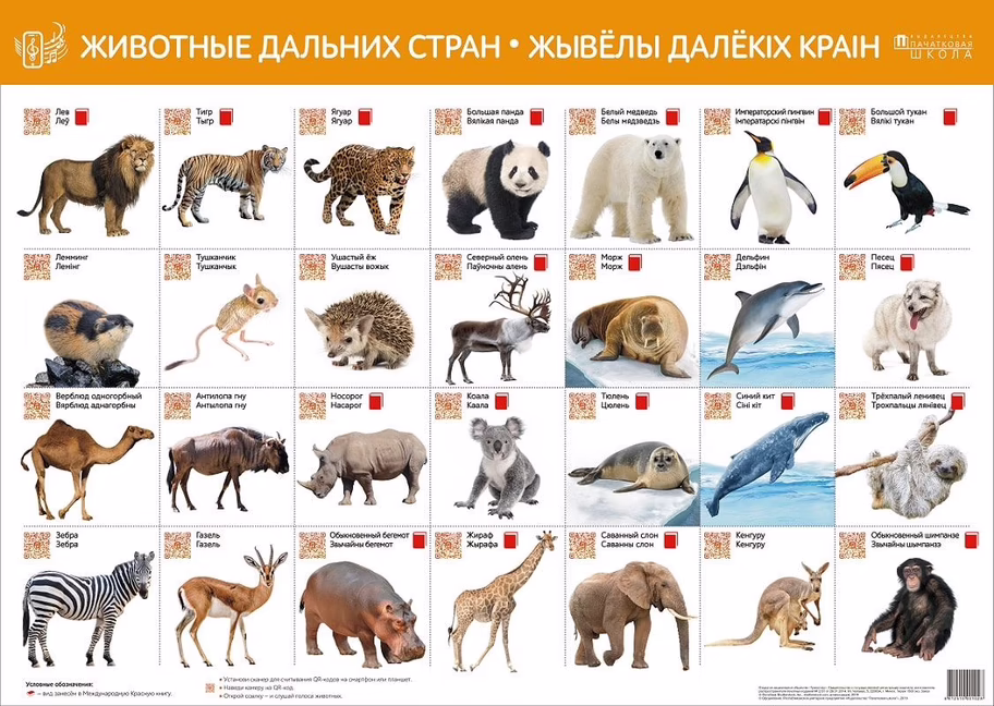 Грозным рыком льва и осторожным писком лемминга продолжаем серию интерактивных плакатов. Да-да, наши плакаты теперь пищат и фыркают, трещат и рычат – 28 животных дальних стран расскажут о себе сами!