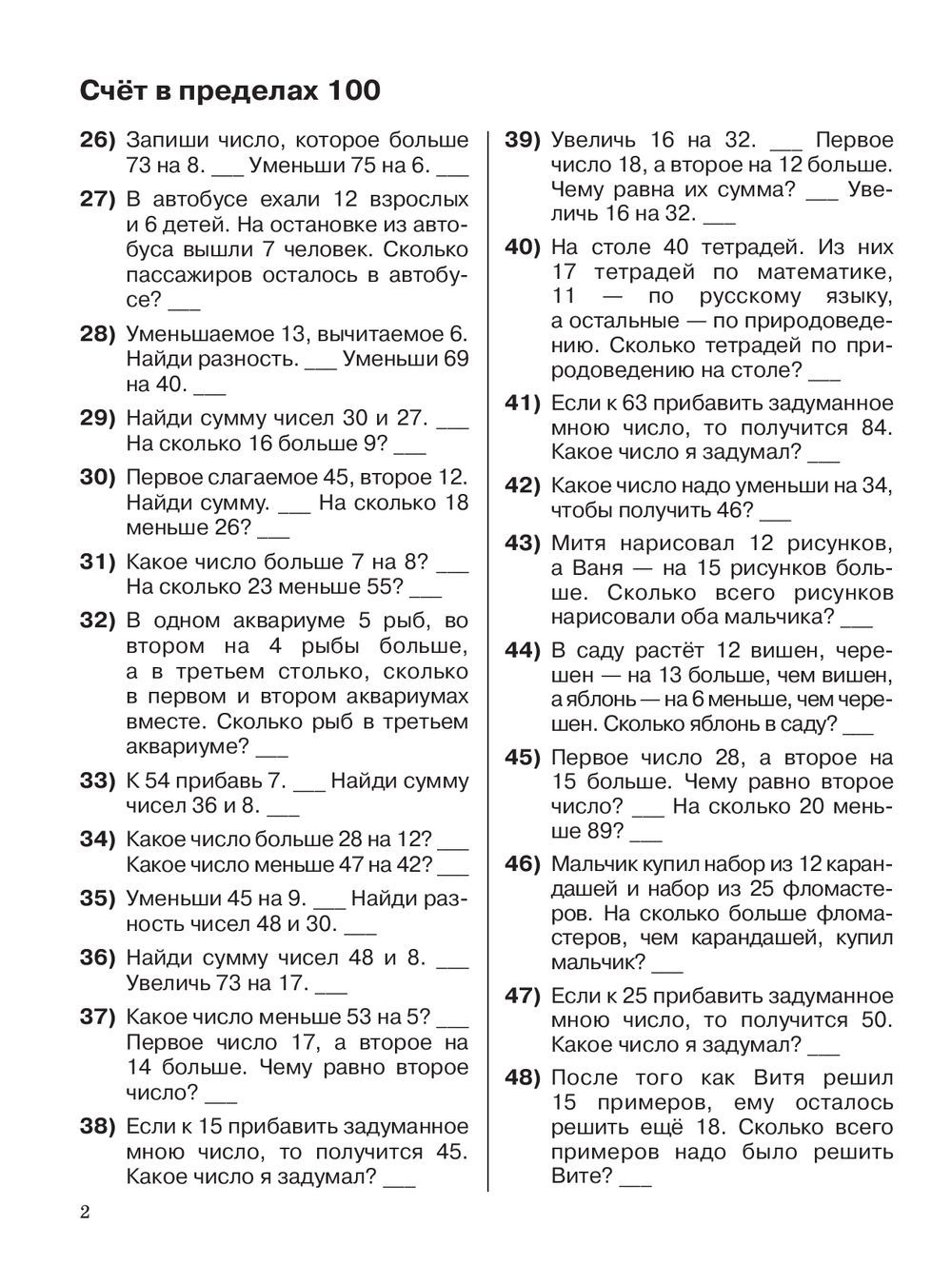 В этом пособии представлен материал, направленный на формирование навыков устного счёта по теме "Счёт в пределах 100" для 2 класса.
