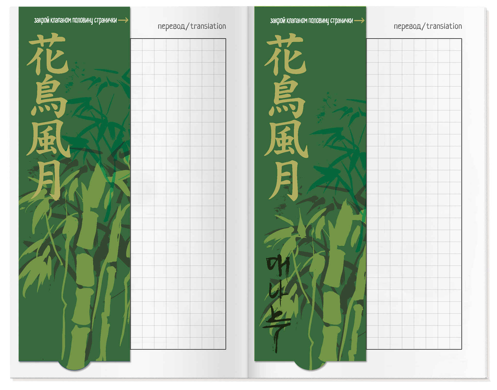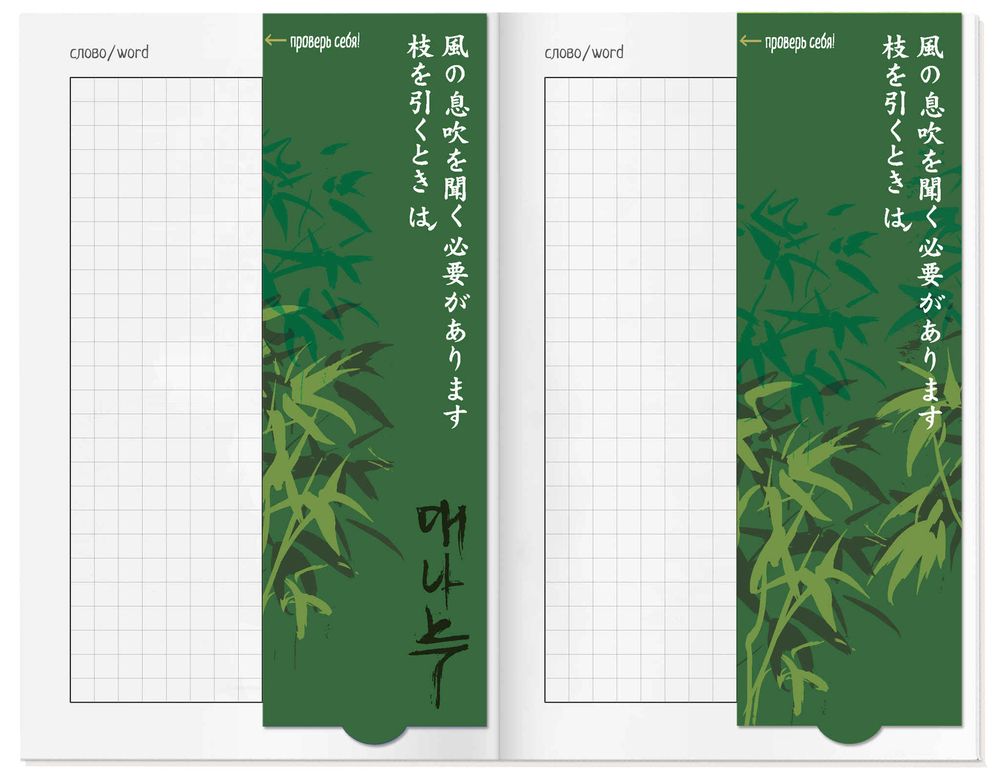 Тетрадь с клапанами предназначена для записи иностранных слов и отработки выученной лексики. Каждая страница поделена на два столбца: для записи слова и перевода. Оригинальная система самопроверки позволит более эффективно запоминать лексику. Для того чтобы проверить себя, закройте клапаном один из столбцов и попробуйте перевести слова на русский язык. Затем закройте другой столбец и переведите слова с русского языка на тот, который изучаете.