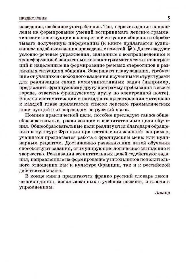 Настоящее учебное пособие предназначено, прежде всего, для учащихся 6-9 классов средней общеобразовательной школы, но может быть использовано в качестве дополнительного материала в различных условиях обучения. Основная цель пособия заключается в развитии умений устного повседневного общения у школьников. В книге предлагаются различные практические задания, направленные на формирование способности воспринимать иноязычную речь и выражать свое коммуникативное намерение в конкретных ситуациях повседневного общения. Книга снабжена аудиозаписью, франко-русским словарём использованных лексических единиц и ключами к упражнениям.