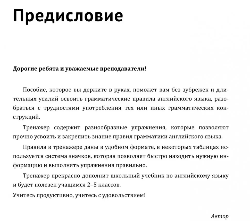 Тренажёр прекрасно дополнит школьный учебник по английскому языку и будет полезен учащимся 2-5 классов.