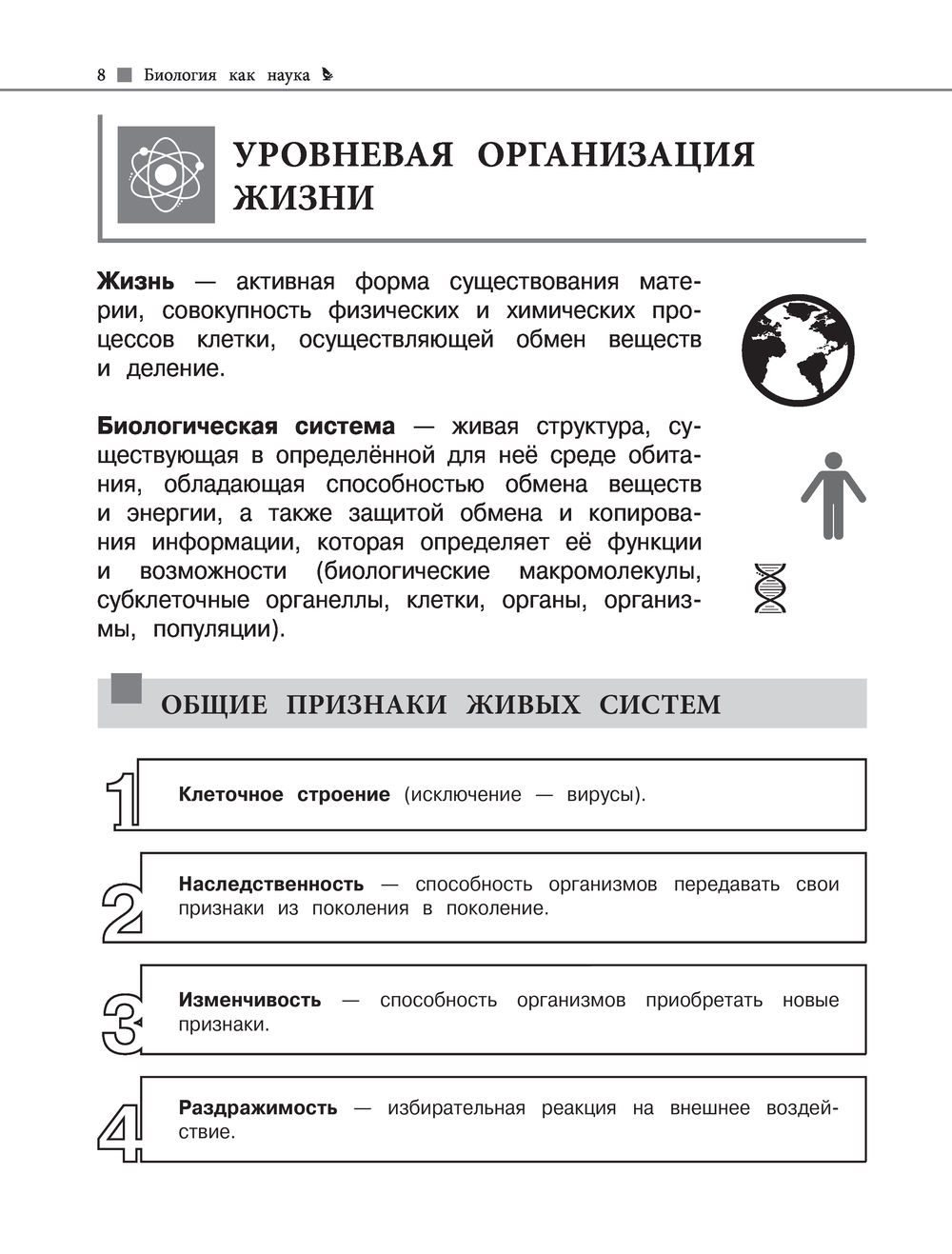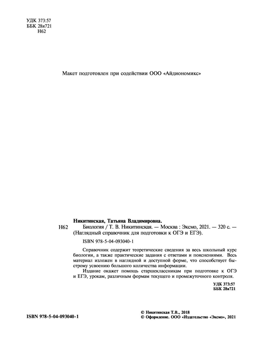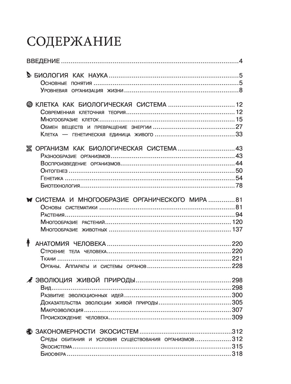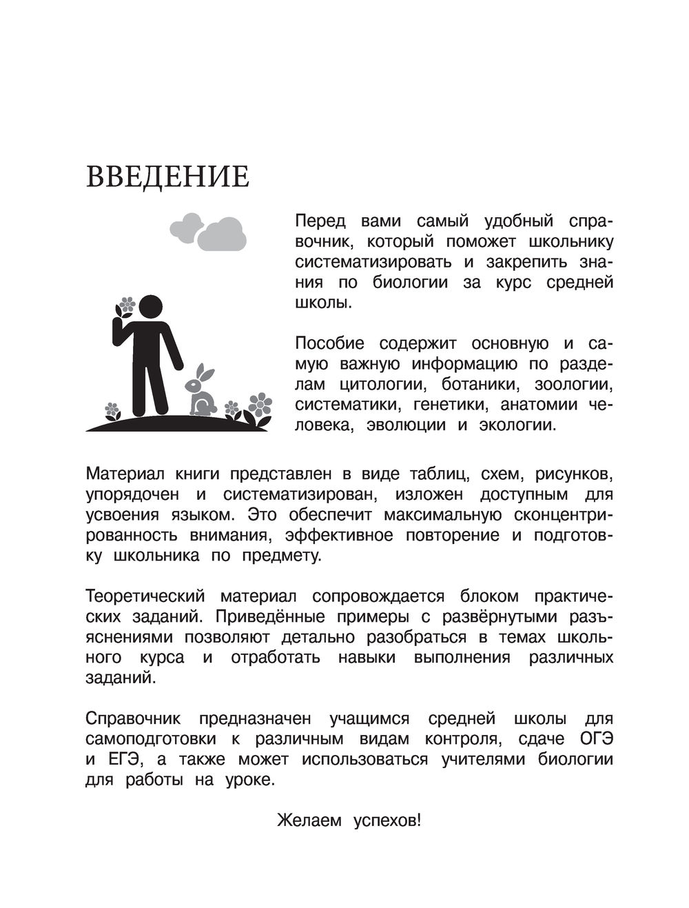 Справочник содержит теоретические сведения за весь школьный курс биологии, а также практические задания с ответами и пояснениями. Весь материал изложен в наглядной и доступной форме, что способствует быстрому усвоению большого количества информации. Издание окажет помощь старшеклассникам при подготовке к ОГЭ и ЕГЭ, урокам, различным формам текущего и промежуточного контроля.