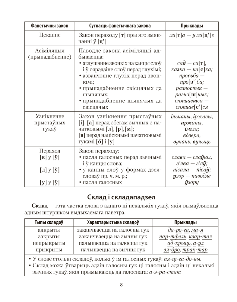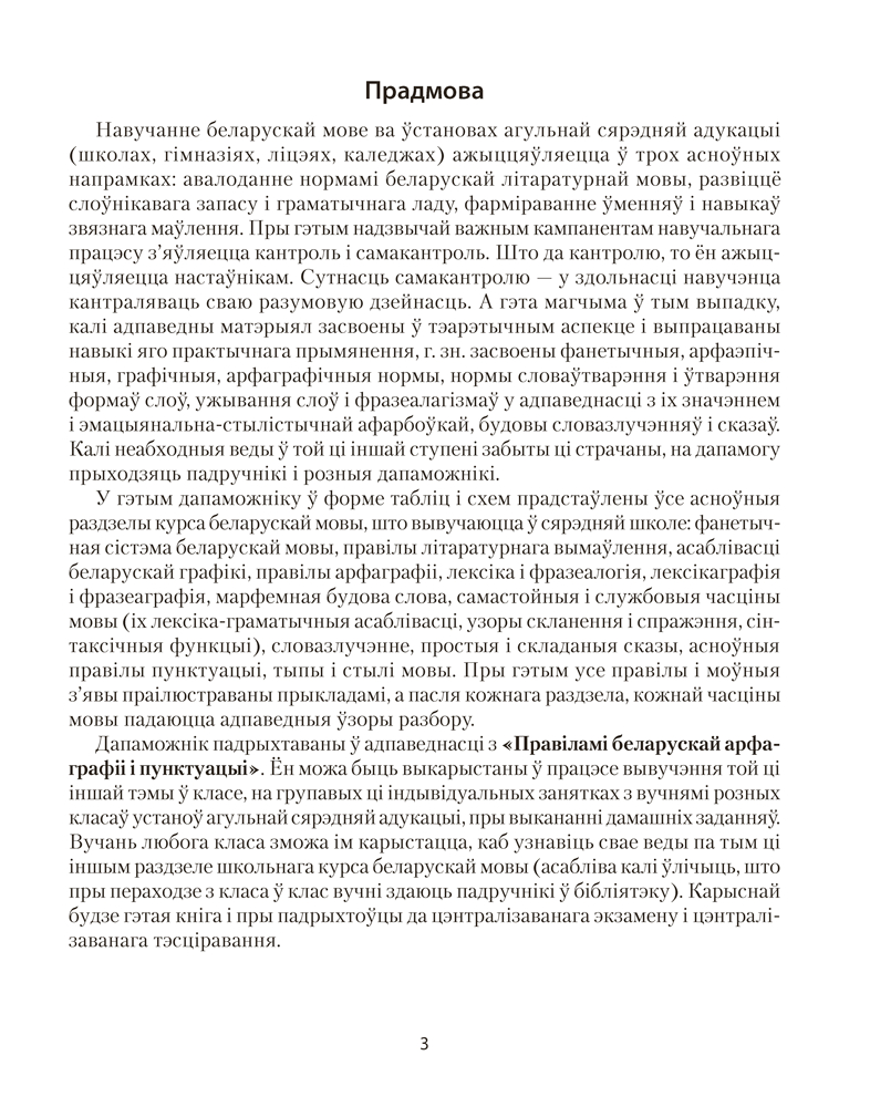 У дапаможніку ў форме табліц і схем сістэматызаваны тэарэтычныя звесткі па ўсіх асноўных раздзелах школьнага курса беларускай мовы.