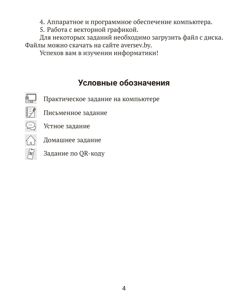 Рабочая тетрадь составлена в соответствии с учебной программой по информатике для 7 класса учреждений общего среднего образования и содержит необходимый теоретический и практический материал по каждой изучаемой теме. Задания, представленные в пособии, направлены на формирование системного мышления и активизацию творческого потенциала, развитие умения находить нестандартные способы получения, осмысления и обработки информации.