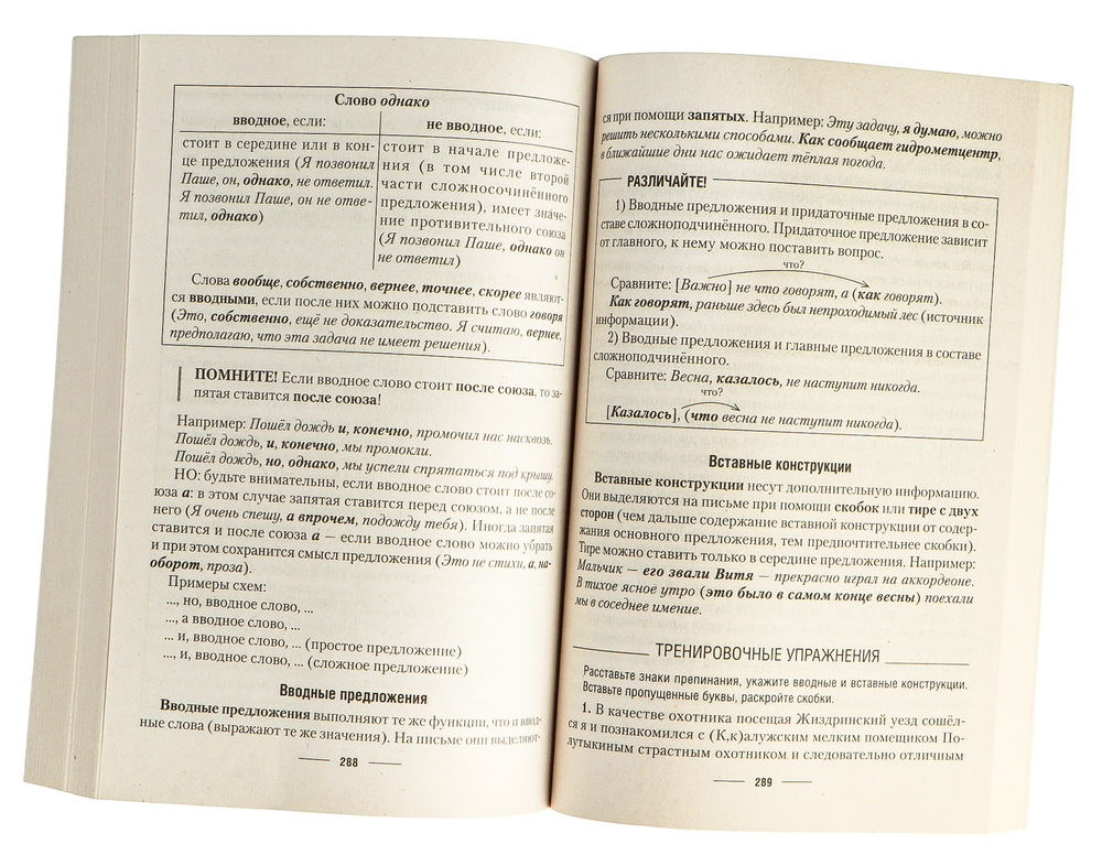 В теоретический блок пособия, помимо основного материала, входят справочная информация и сведения по культуре речи. После каждой темы следуют упражнения на закрепление знаний. Пособие также включает контрольные тесты, охватывающие содержание нескольких тем, что даёт возможность периодически повторять весь пройденный материал. Почти все задания сопровождаются ответами.