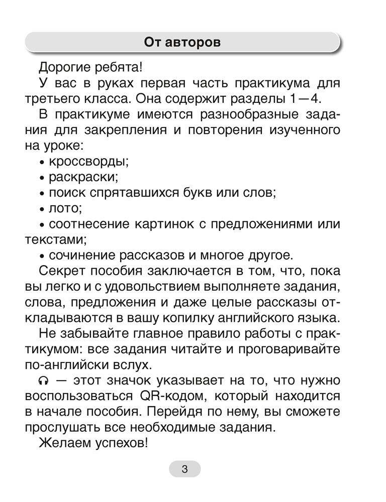 Издание дополняет учебное пособие "Английский язык. 3 класс" авторов Л. М. Лапицкой и других. Представленные задания способствуют развитию устойчивых навыков чтения и письма, а также активации грамматических структур в устной и письменной речи.