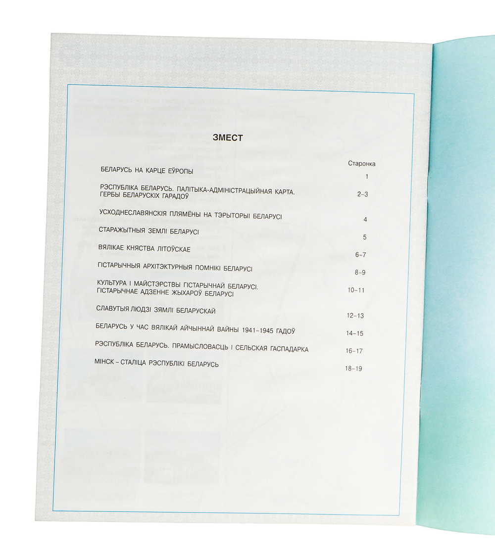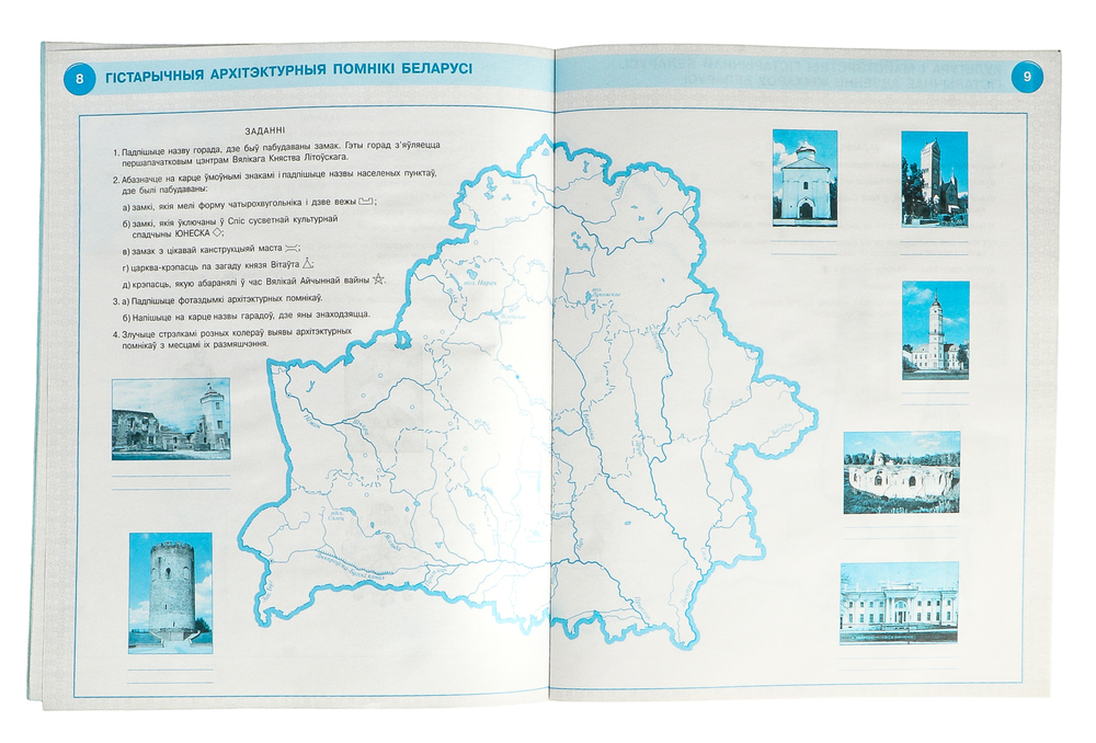 Контурная карта на белорусском языке, для 4 класса.