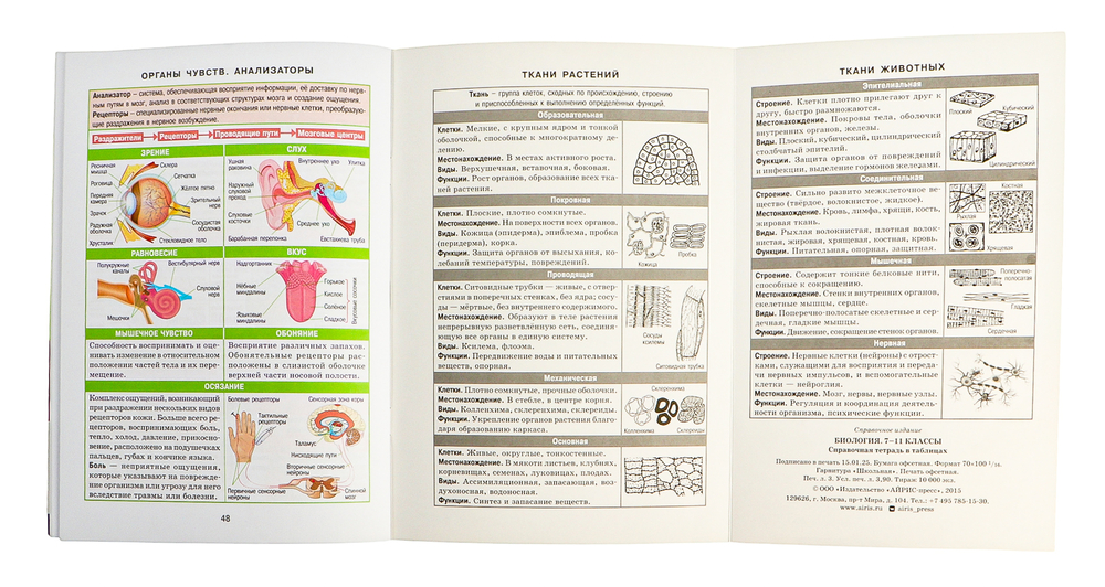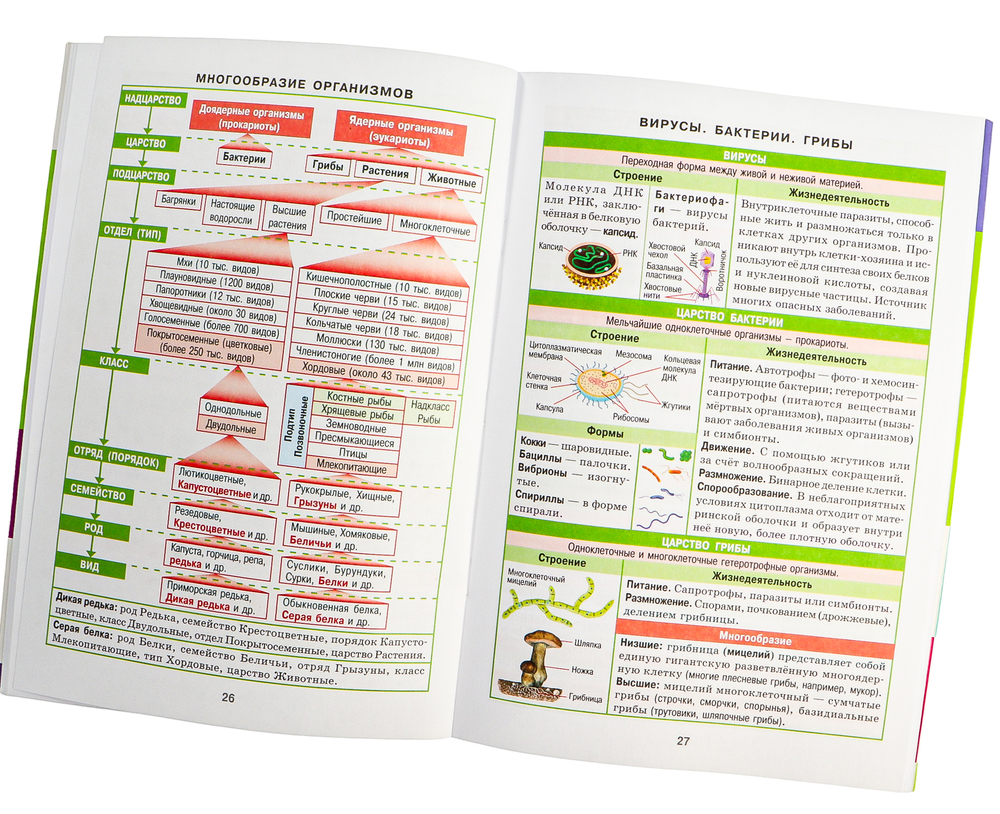 Справочник содержит весь курс биологии для школьников. Материал представлен в виде таблиц, каждая таблица на отдельной странице. Благодаря такой наглядной подаче усвоить тему будет легко при любом уровне подготовленности. Быстро ориентироваться в пособии поможет удобная поисковая система. Клапаны книги могут быть использованы для заметок во время занятий и как закладки. Справочник всегда должен быть под рукой у старшеклассников и абитуриентов для успешной подготовки к экзаменам.
