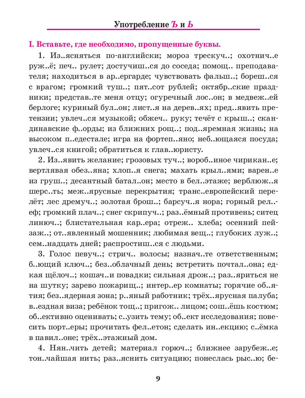 Пособие представляет собой сборник упражнений по орфографии и пунктуации, составленный в соответствии с учебной программой по русскому языку для 9 класса. Тренажёр предназначен для закрепления изученного на уроках русского языка материала, а также для организации дополнительных занятий с учащимися дома.