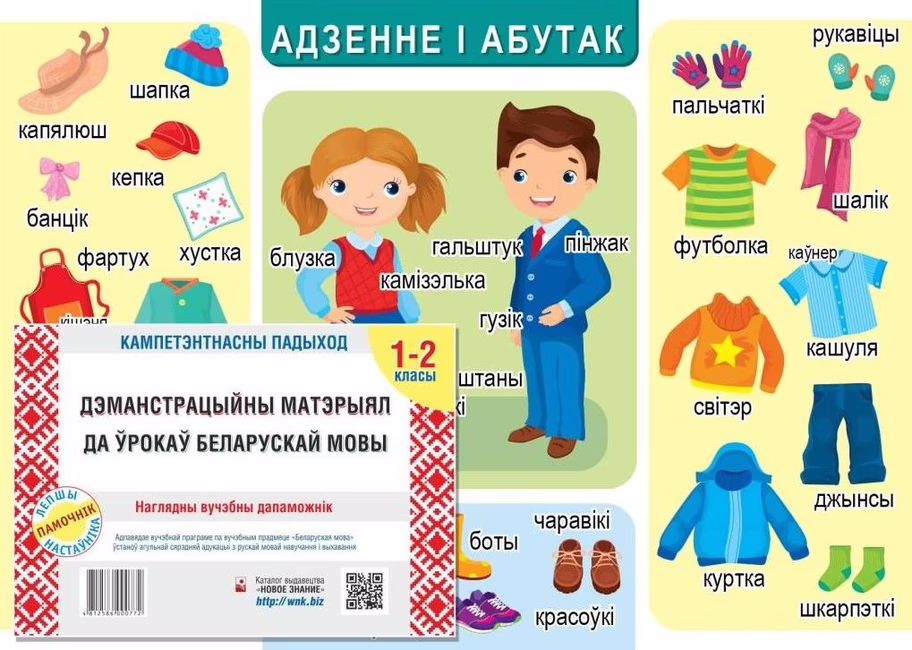Наглядны дапаможнік змяшчае плакаты з малюнкамі, якія пазнаёмяць вучняў з беларускай лексікай.