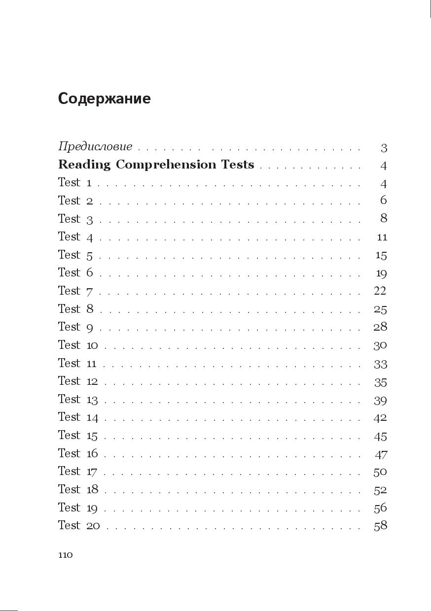 Пособие состоит из двух частей: Reading Comprehension Tests и Lexical and Grammmar Comprehension Tests. В первой части представлены тексты и задания к ним, позволяющие проверить умение понимать текст в целом и распознавать детали. Задания второй части проверяют уровень сформированности грамматических и лексических навыков.