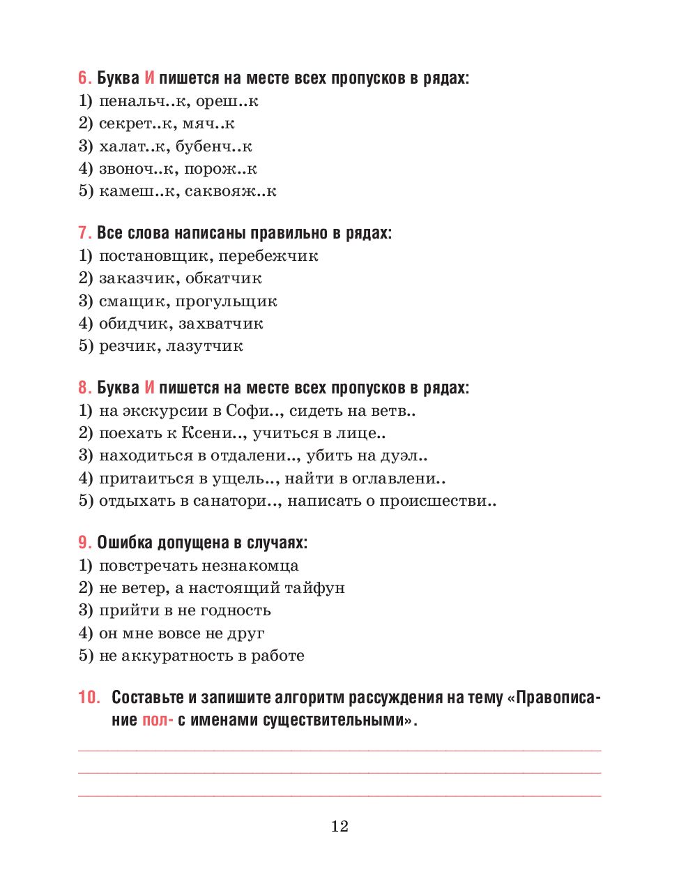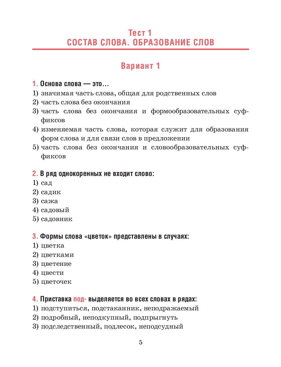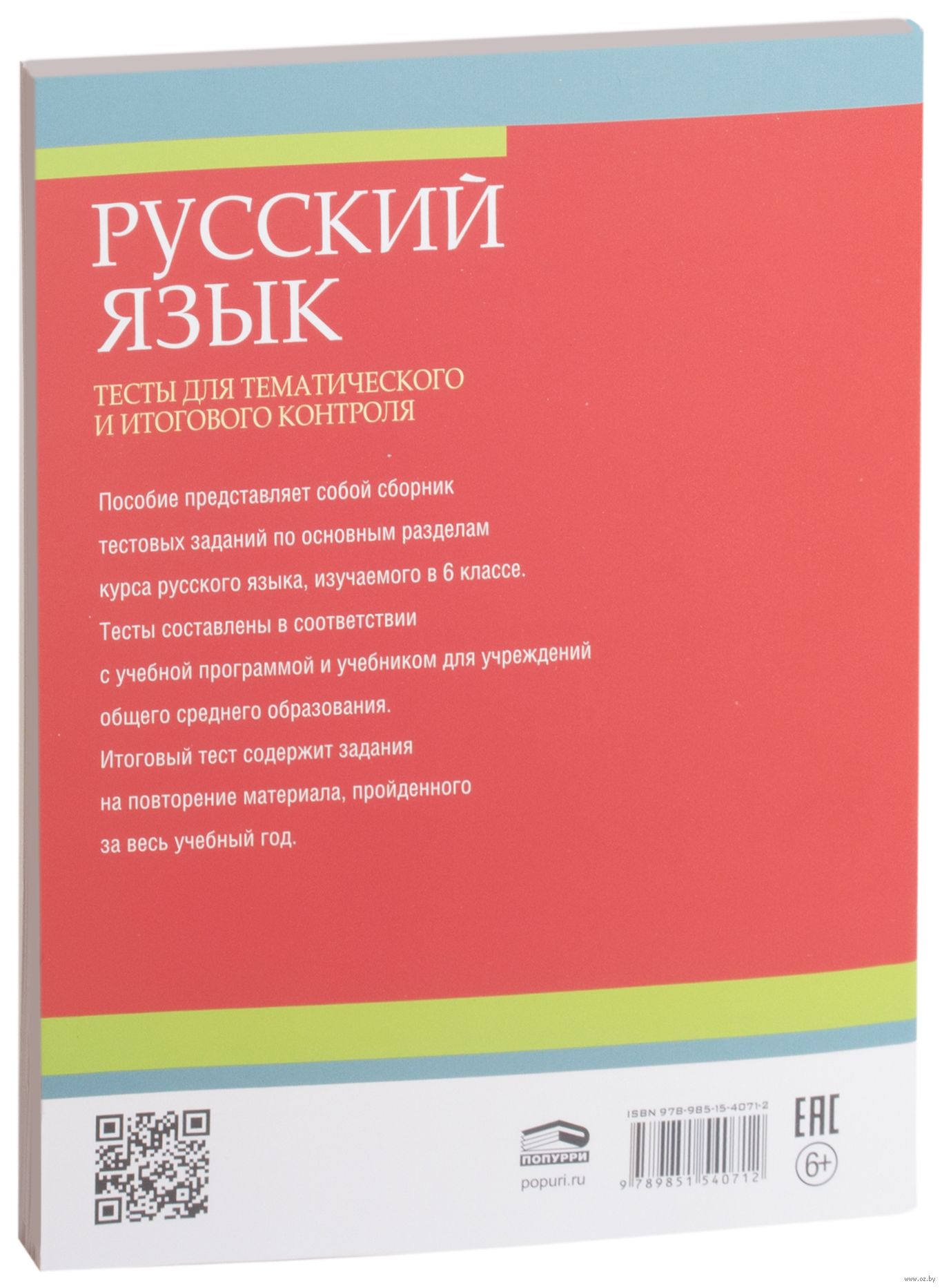 Пособие представляет собой сборник тестовых заданий по основным разделам курса русского языка, изучаемого в 6 классе.