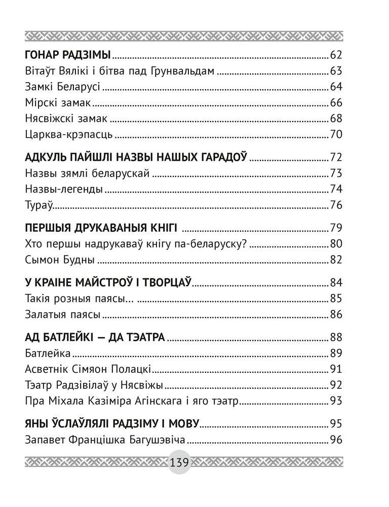 Кніга адпавядае вучэбнай праграме для 4 класа і ўключае тэксты для сумеснага чытання дзяцей і дарослых. Матэрыял дапаможніка носіць развіццёвы характар і будзе спрыяць атрыманню цікавых звестак пра гістарычную спадчыну нашай краіны.