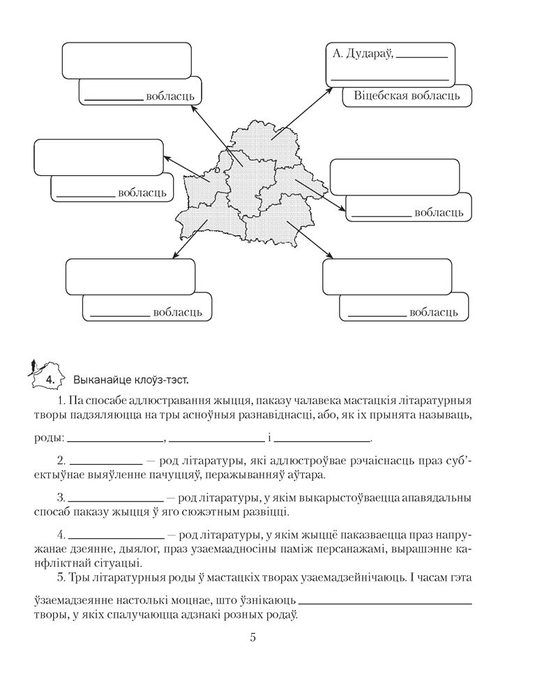 Сшытак падрыхтаваны ў адпаведнасці з праграмай па беларускай літаратуры. Ён дапаўняе вучэбны дапаможнік і змяшчае заданні розных узроўняў складанасці, якія маюць творчы характар, развіваюць здольнасці вучняў. Сшытак дасць магчымасць замацаваць і праверыць набытыя на ўроку веды.