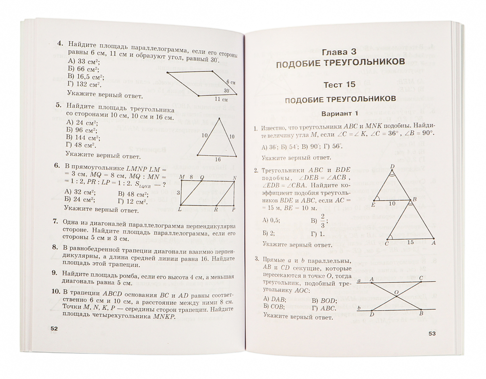 Пособие содержит тесты, которые позволят провести контроль знаний, умений и навыков учащихся по геометрии в 8 классе. Материал призван повысить эффективность проведения учебного процесса с учетом индивидуальных возможностей учащихся, так как предложенные задания носят разноуровневый характер. Тесты представлены в двух вариантах по каждой теме.