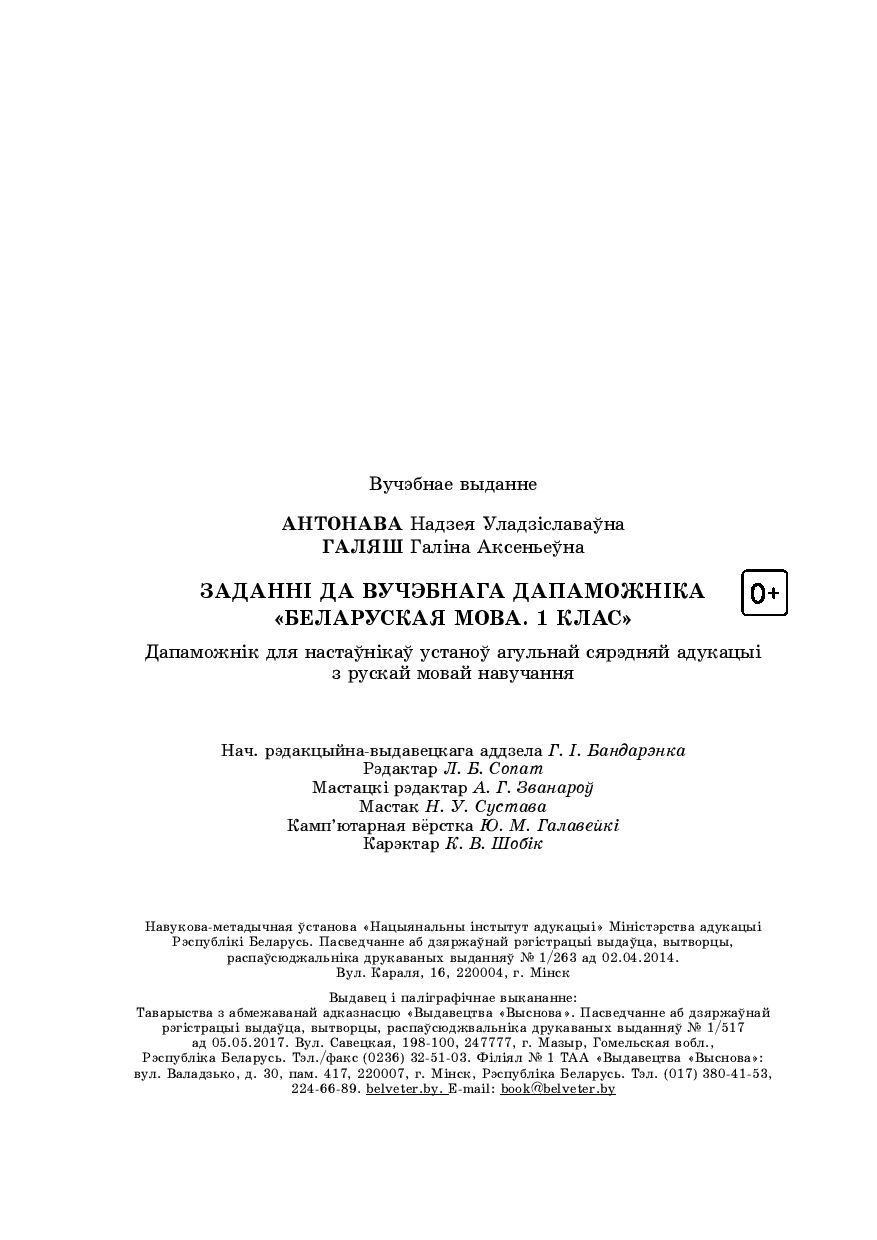 Матэрыял з'яўляецца састаўной часткай вучэбна-метадычнага комплексу па беларускай мове для 1 класа ўстаноў агульнай сярэдняй адукацыі з рускай мовай навучання, прызначаны ў дапамогу настаўніку для правядзення заняткаў з выкарыстаннем вучэбнага дапаможніка "Беларуская мова 1 клас".